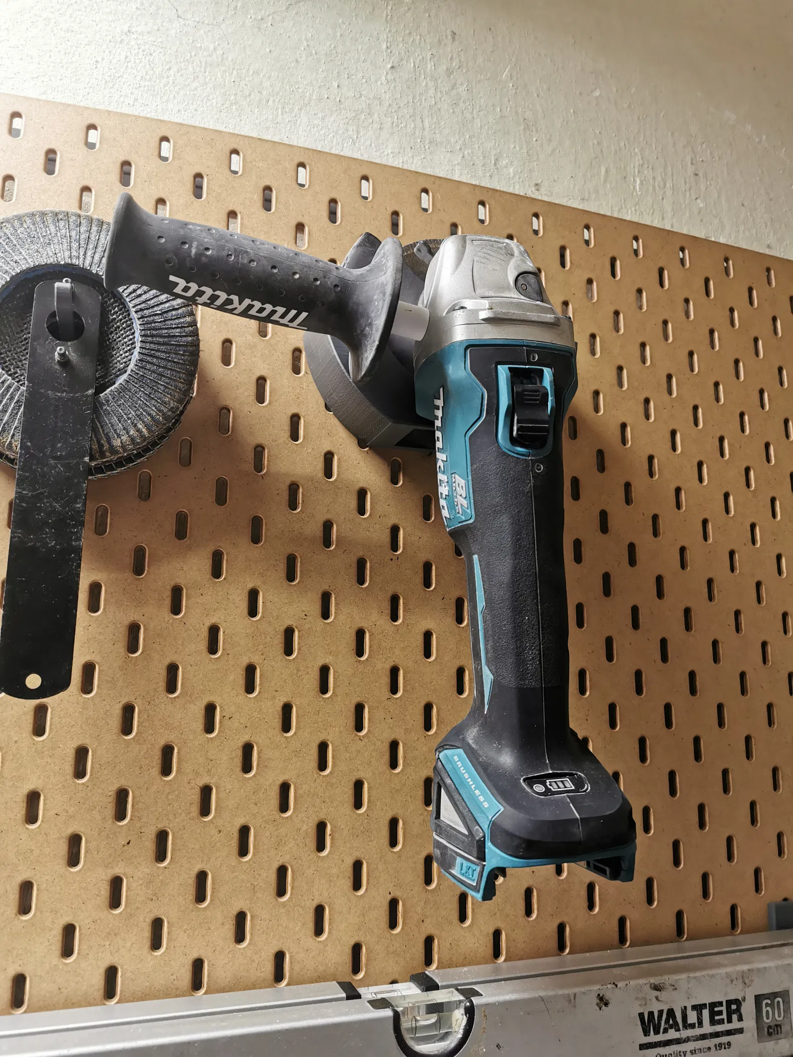 Làm cho xưởng của bạn gọn gàng và hiệu quả hơn! Với ngàm treo được thiết kế riêng này, bạn có thể gắn máy mài góc (angle grinder) của mình lên bảng lỗ Ikea Skadis một cách chắc chắn, tiết kiệm diện tích. Khỏi cảnh để dụng cụ nằm lung tung – từ giờ máy mài lúc nào cũng trong tầm tay.