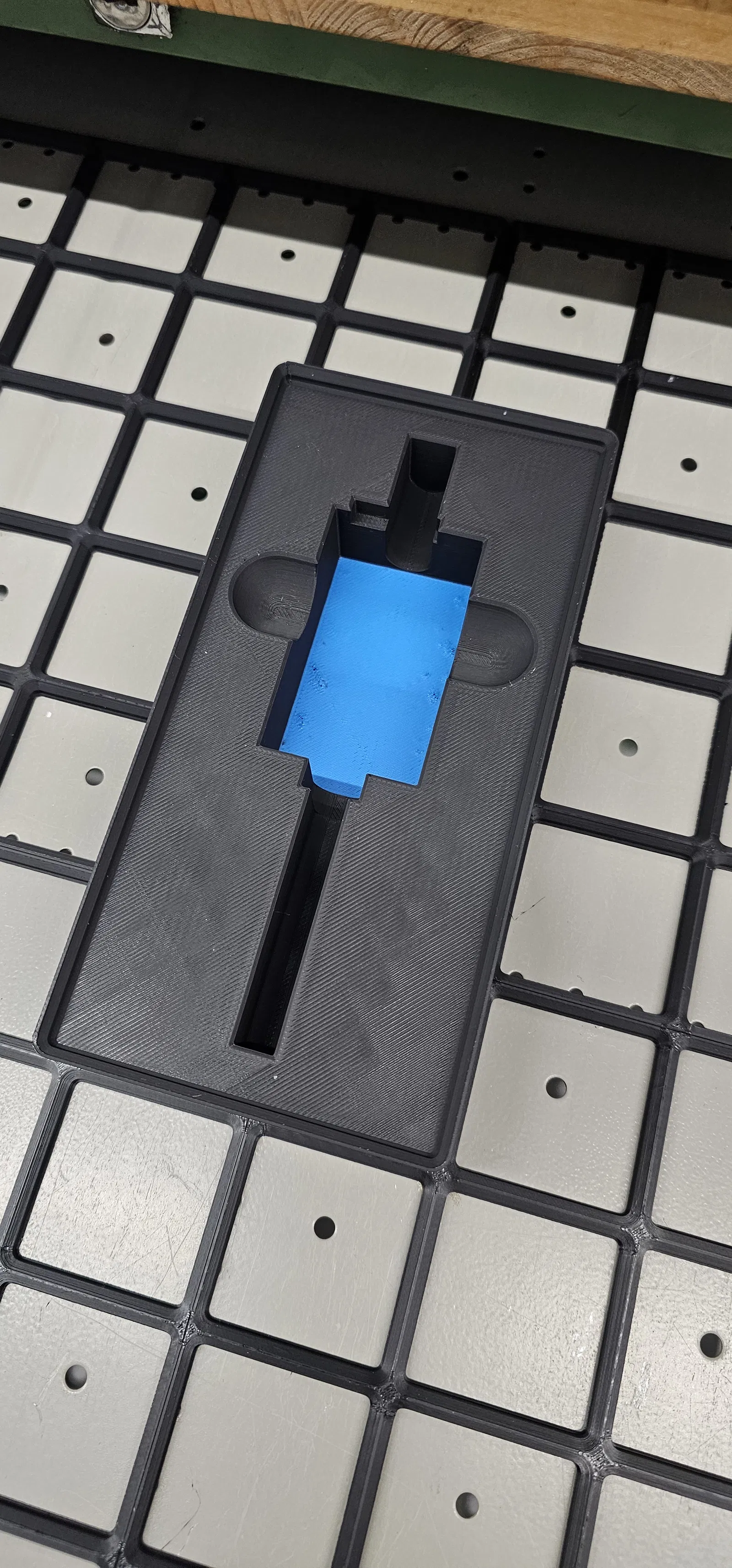 Phần khoét theo hình dụng cụ (tool cutout) được tự thiết kế từ đầu.