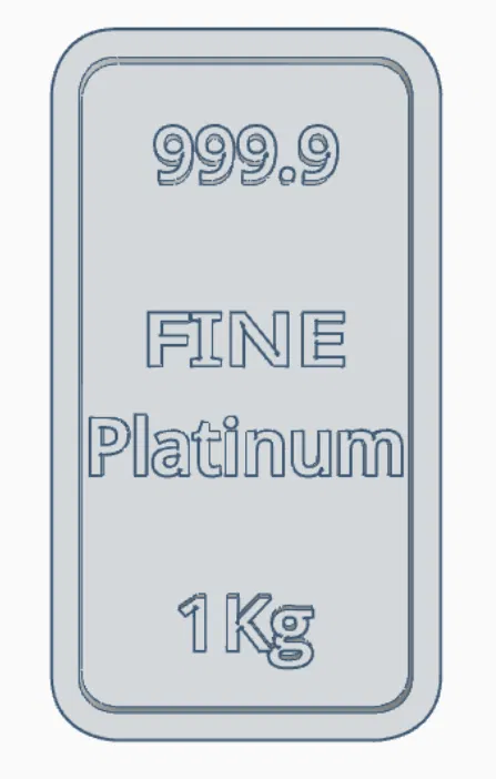 Mẫu 3D Thỏi Platinum (Platinum Bar) nặng 1kg với độ tinh khiết 999.9. Phù hợp để trưng bày, đạo cụ (prop) hoặc làm mô hình sưu tầm; in 3D tùy chỉnh kích thước theo nhu cầu.