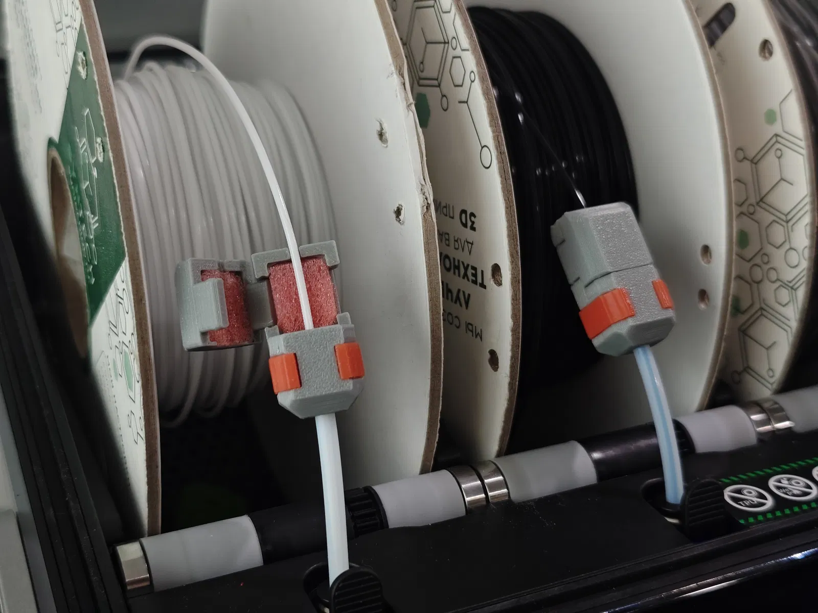 Luồn filament đi qua filter (có thể mở vỏ để chỉnh/thay miếng đệm).