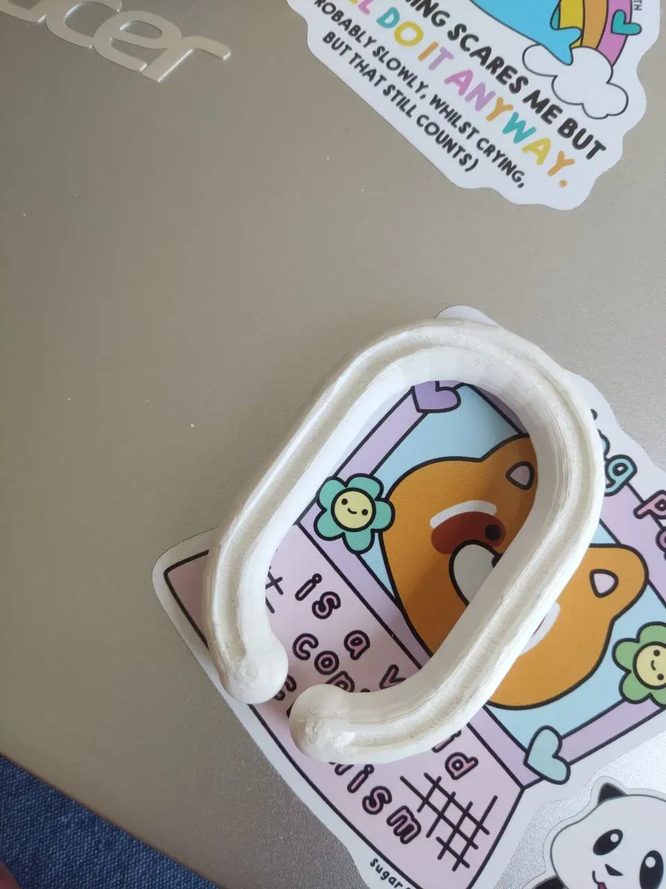 Mô hình này xảy ra sau khi chị gái tôi có một chiếc nhẫn trên một tấm thảm chơi Fisher-Price đã có trong gia đình suốt 30 năm. Phiên bản hiện đại gần nhất sẽ là Fisher-Price Activity City Gym To Jumbo Play Mat With Music And Lights. Vì vậy, nếu ai đó thắc mắc về độ bền của những thứ này: sáu đến bảy trẻ sơ sinh và ba thập kỷ chơi trước khi một phần bị hỏng. Một bộ phận thay thế đã được đặt hàng--với thời gian giao hàng ước tính từ 4-7 ngày làm việc. Đây là thời gian giao hàng ngắn nhất có thể được cung cấp. Và, tất nhiên, cháu trai đã quyết định không ai được ngủ cho đến khi cậu ấy lấy lại quyền truy cập vào món đồ chơi của mình--với tất cả các món đồ nhồi bông treo lủng lẳng. Anh trai và bố tôi có một máy in gần nhà cô ấy, nhưng không thể tìm ra cách để mô hình hóa cái này. Tôi có thể làm việc với Tinkercad nếu bị ép buộc, nhưng sống rất xa. Bố đã cung cấp các kích thước, và tôi đã cố gắng hết sức với các hình dạng cơ bản. Phiên bản của tôi có phần ngắn hơn một chút so với nguyên bản những năm 90, nhưng nó thực hiện những gì nó cần làm (tức là treo một món đồ nhồi bông nặng 50-70g mỗi chiếc nhẫn trong tầm với của một em bé 6 tháng tuổi).