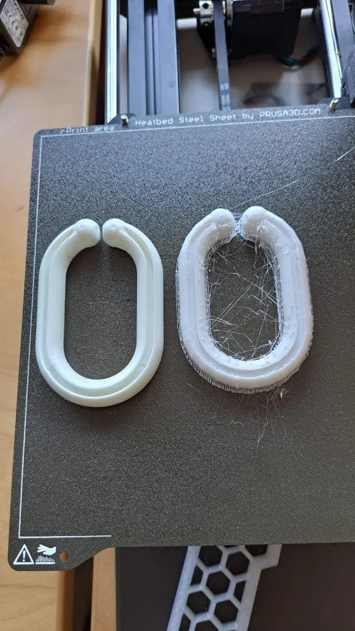 Hai bức ảnh đầu tiên là bản in thử nghiệm của tôi bằng PLA, bản in thứ ba là nỗ lực đầu tiên của bố tôi khi cố gắng in nó bằng PETG, bức ảnh thứ tư là so sánh giữa bản gốc bị hỏng và bản in PETG, bức ảnh thứ năm là bản gốc bị hỏng.