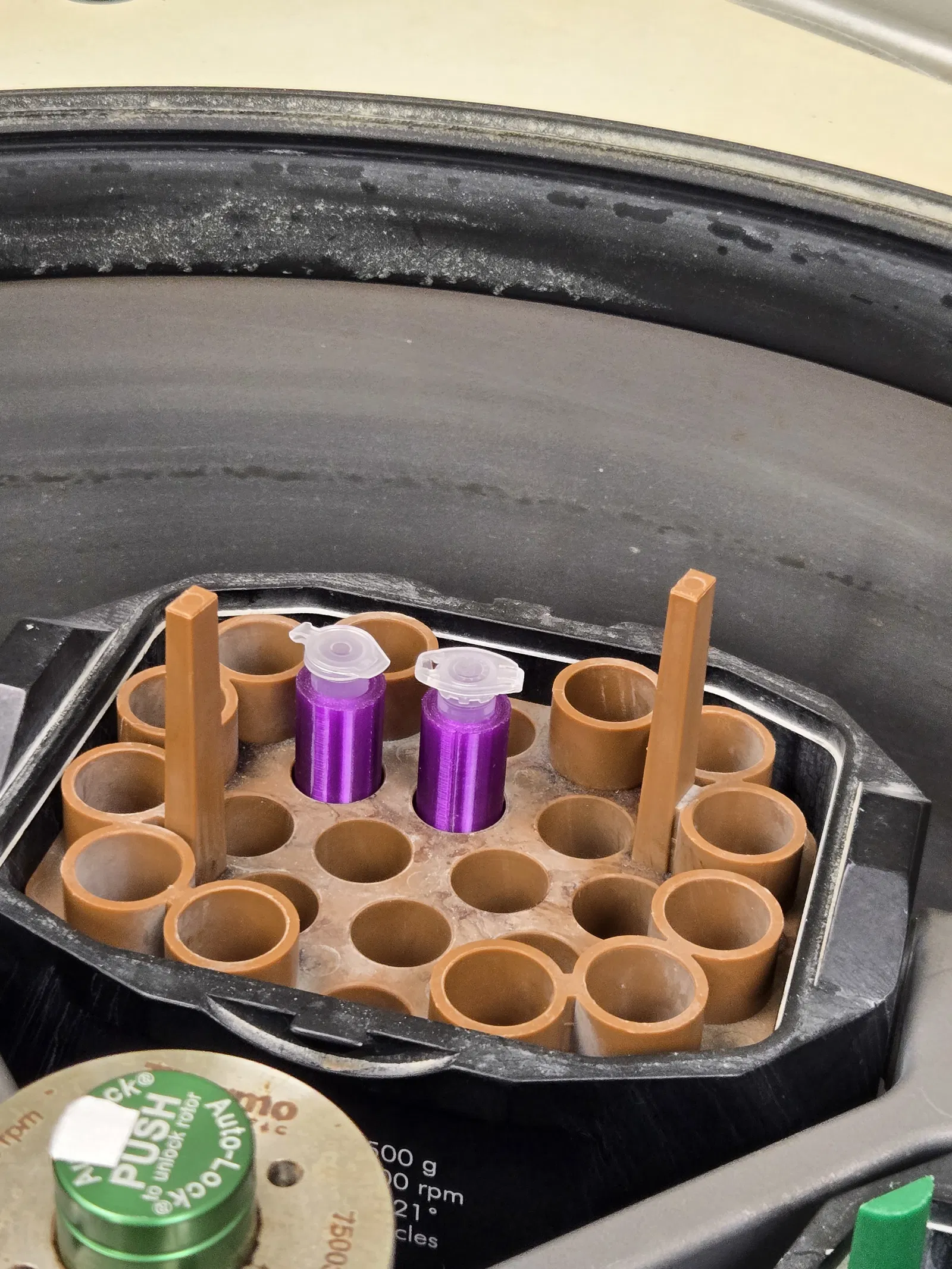 Đây là một adapter để ly tâm (centrifuge) ống 1.5 mL trong các khe/slot dành cho ống 15 mL. Món này hữu ích vì đa số máy ly tâm chạy ống 1.5 mL thường không phải loại swinging bucket centrifuge.