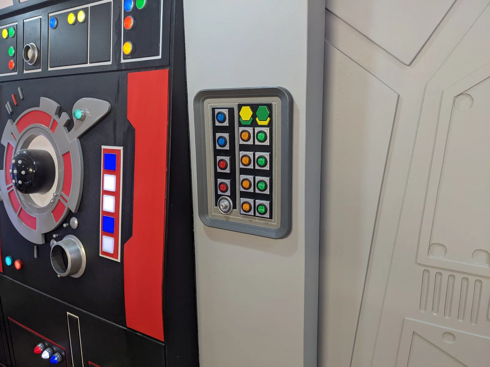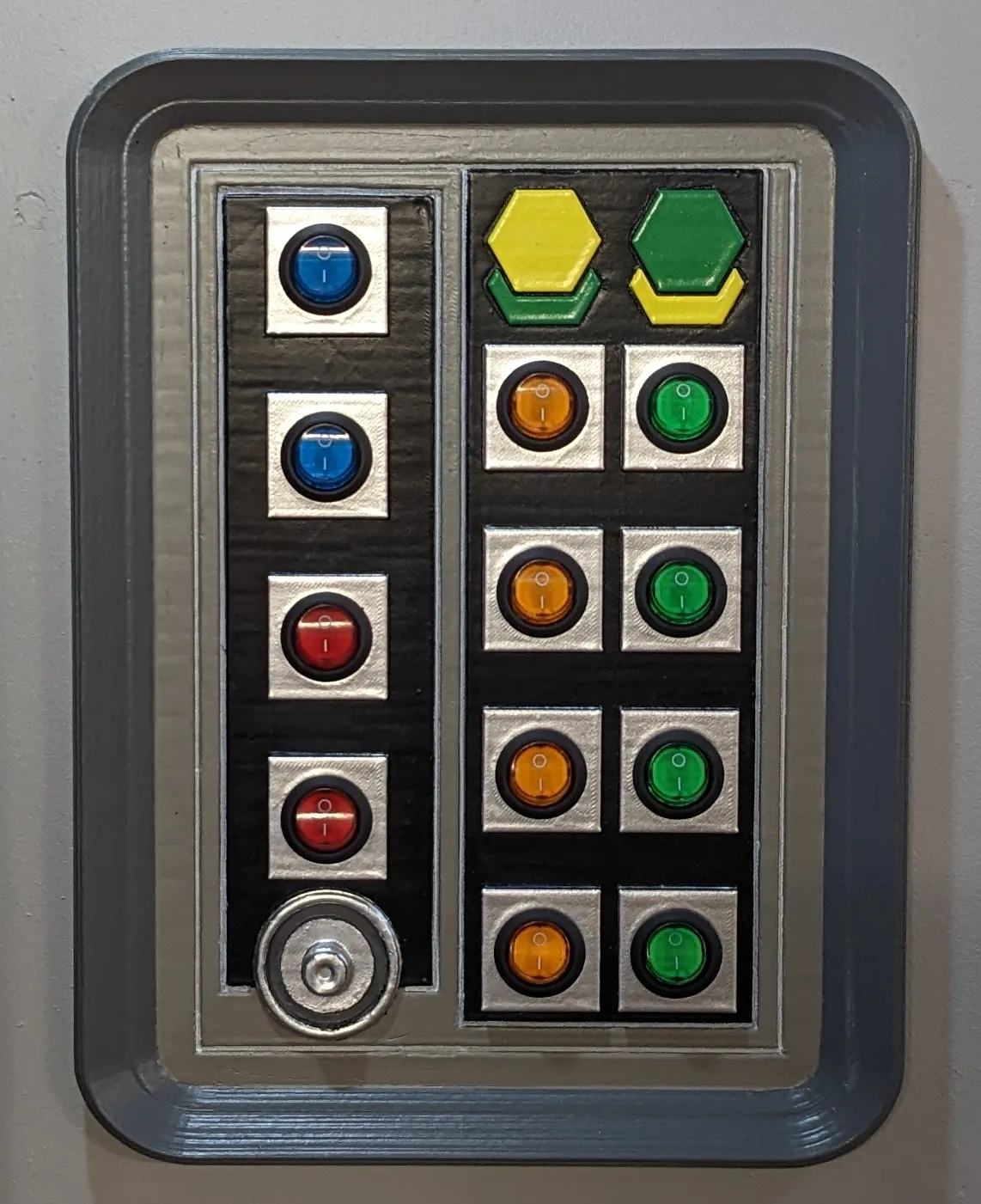 Bảng điều khiển tường Star Wars với 12 lỗ cho các công tắc rocker LED vòng 19mm.