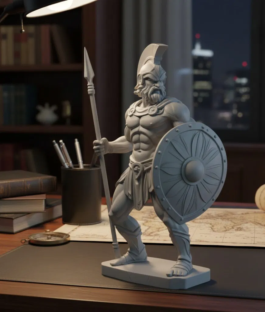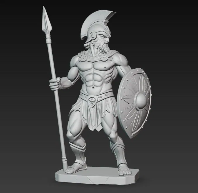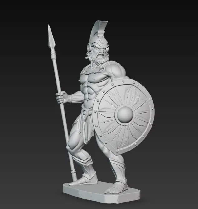 Mẫu tượng thần Ares (thần chiến tranh) với đầy đủ trang bị: giáo, mũ giáp và khiên. Phù hợp để in 3D làm mô hình trưng bày hoặc sưu tầm theo phong cách chiến binh.