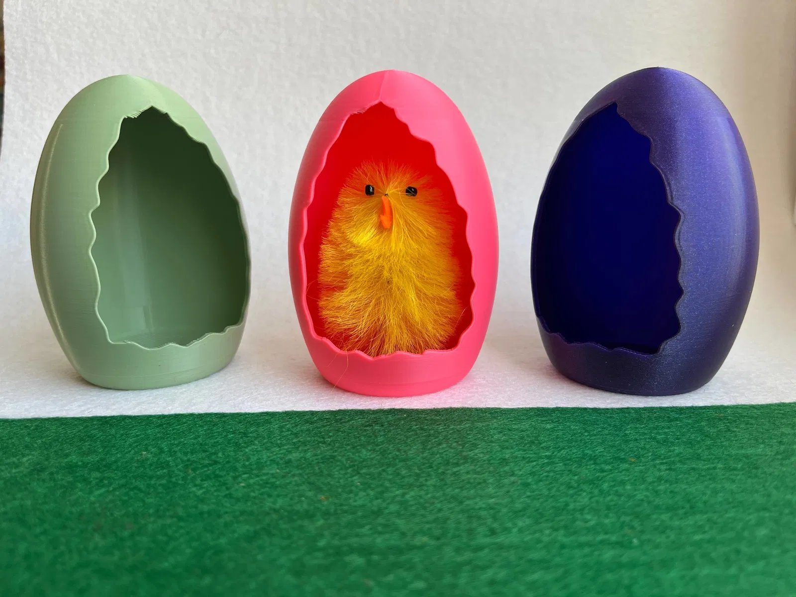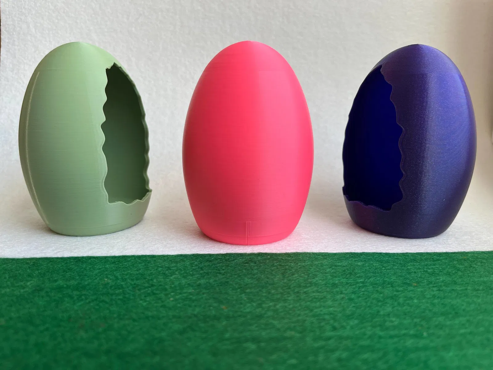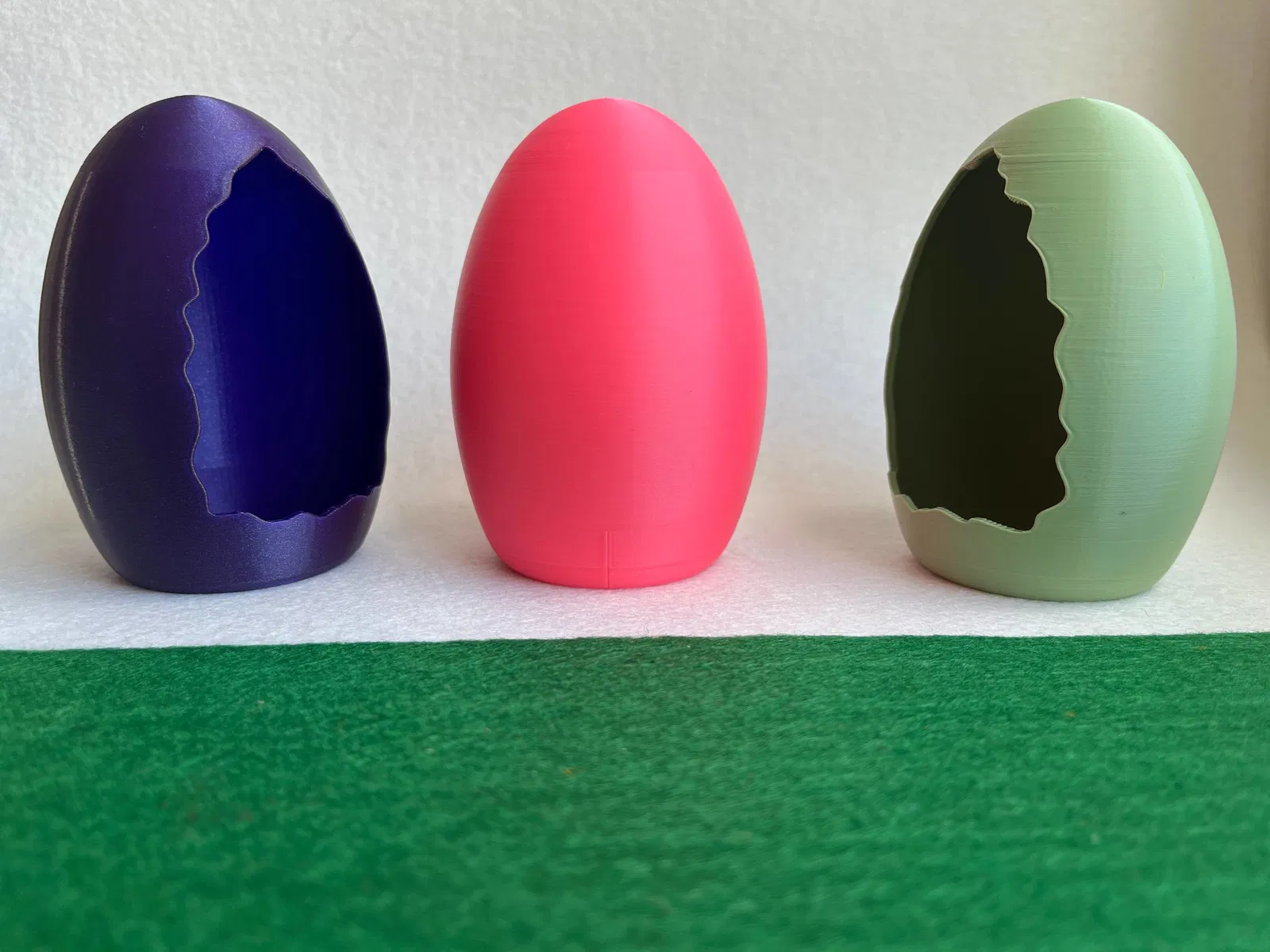 Mẫu trứng Phục Sinh trang trí dạng vỏ rỗng, mặt trước có khe nứt như vỏ trứng bể. In không cần support, seam đã có sẵn. Phù hợp để nhét kẹo, tượng nhỏ hoặc đèn LED làm decor theo mùa.