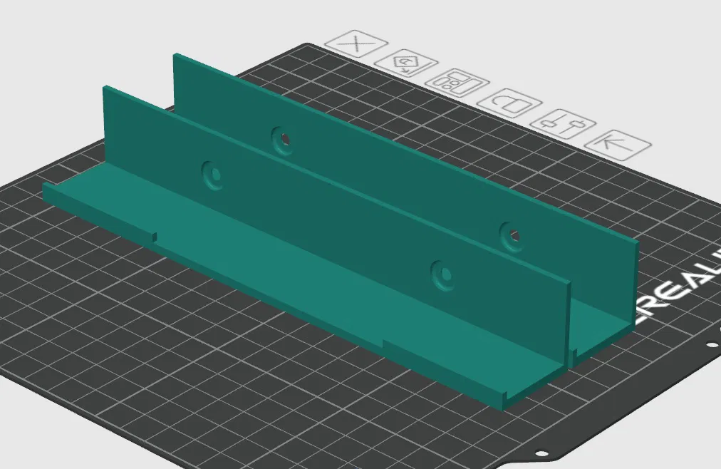 Mình in 2 cái cho bản prototype để gắn một cái phía trên và một cái phía dưới. Phần ngàm phía trước sẽ kẹp và giữ khung cố định tại chỗ.