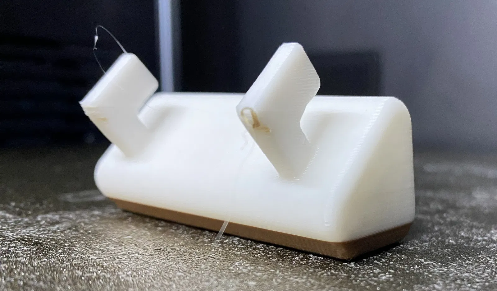 Mẫu là một khối liền; phần đổi màu được làm bằng lệnh đơn giản “at layer” trong slicer.