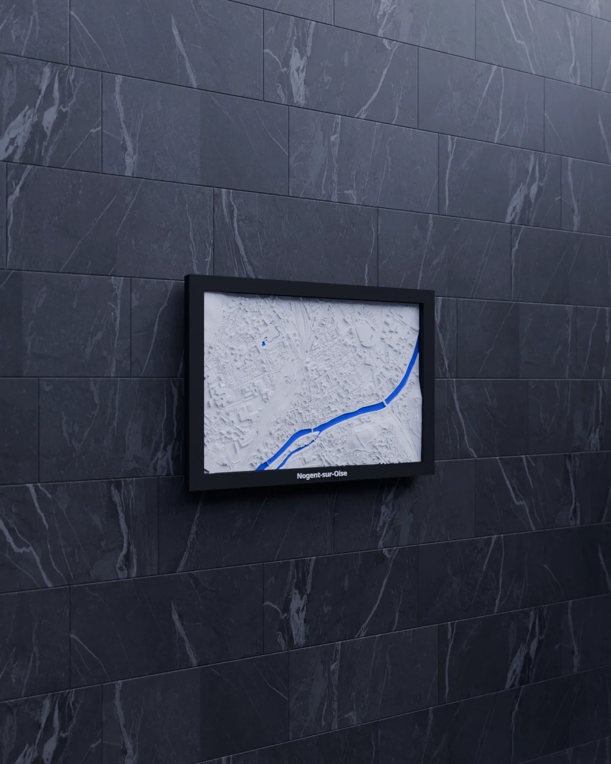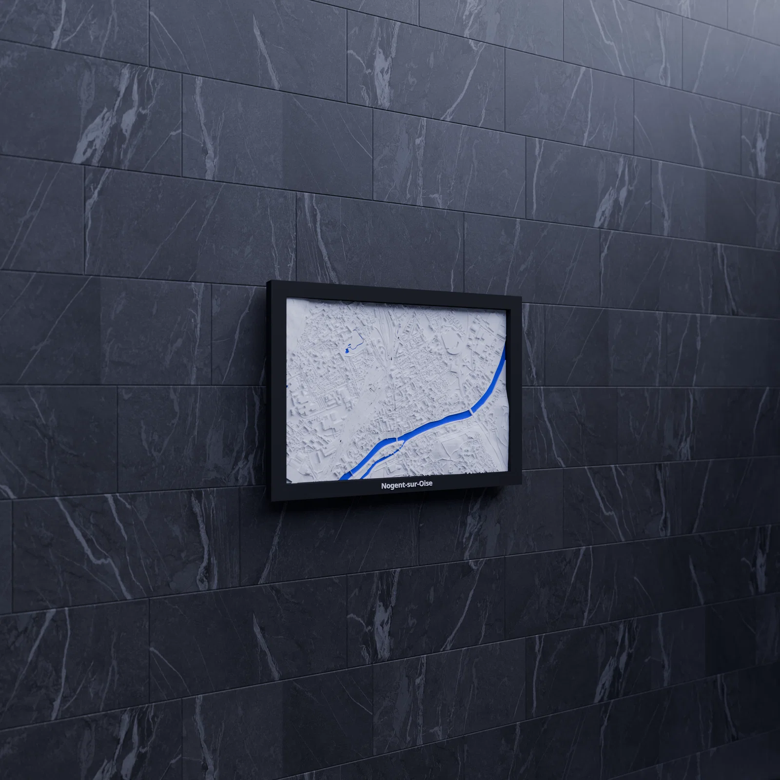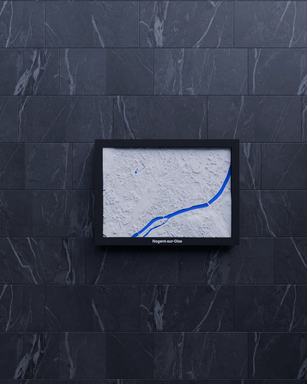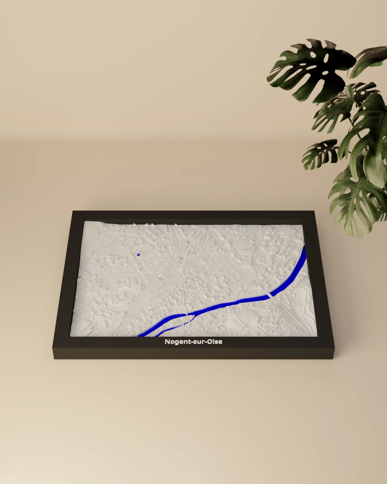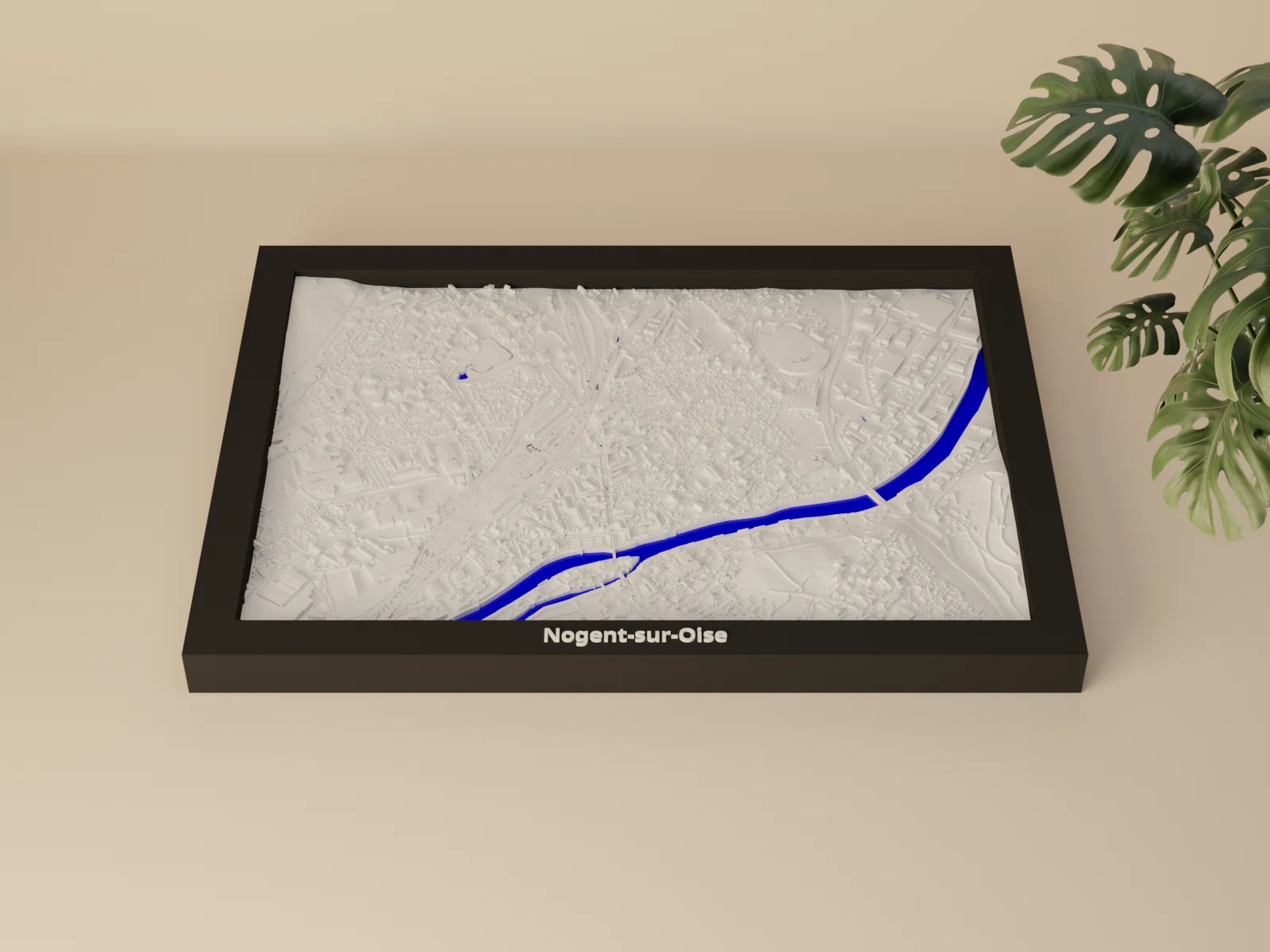 Bản miniature địa hình 3D tái hiện Nogent-sur-Oise (Pháp) từ dữ liệu địa lý, thu nhỏ khu vực 2.563 × 1.791 km thành kích thước 170.5 × 119.5 mm. Có STL/3MF và nhiều lựa chọn frame kèm lỗ treo.