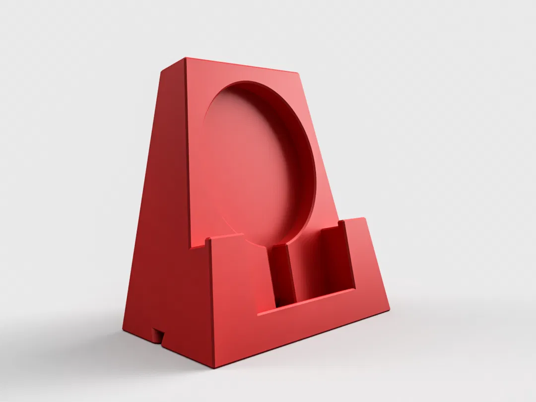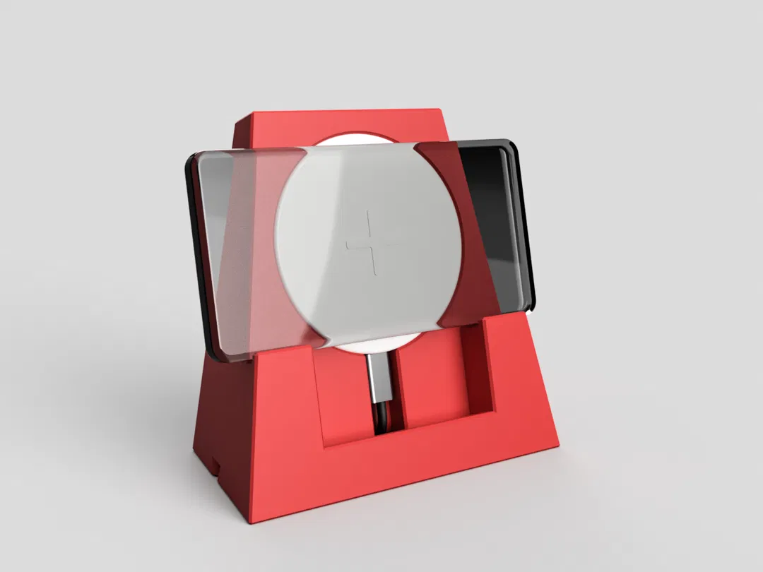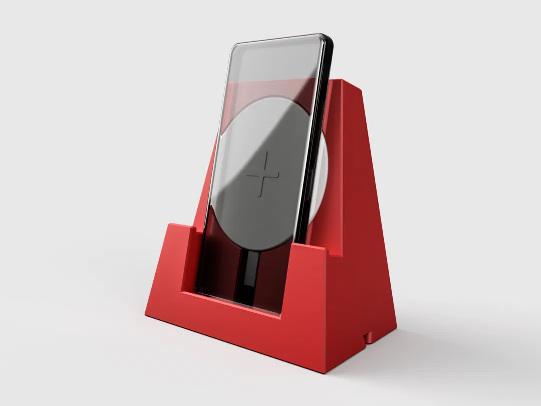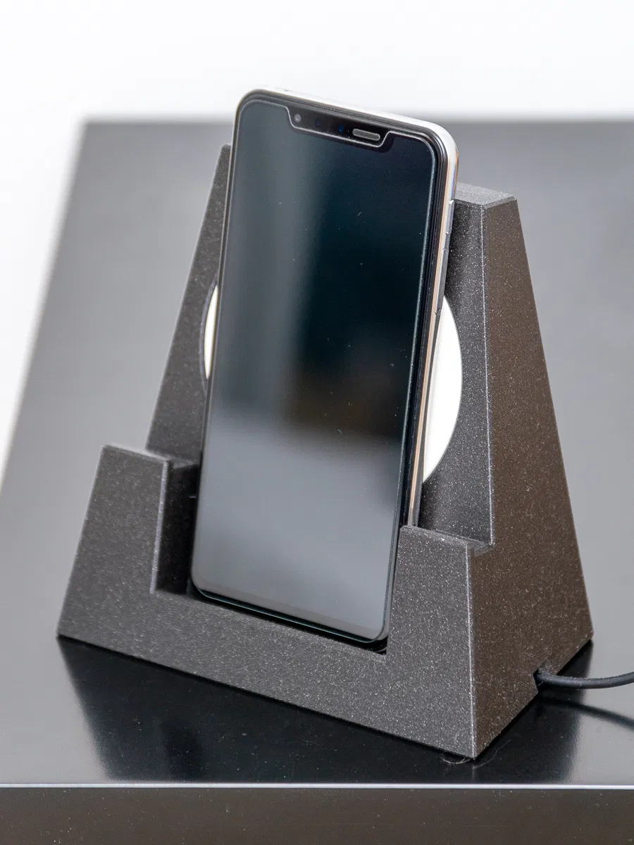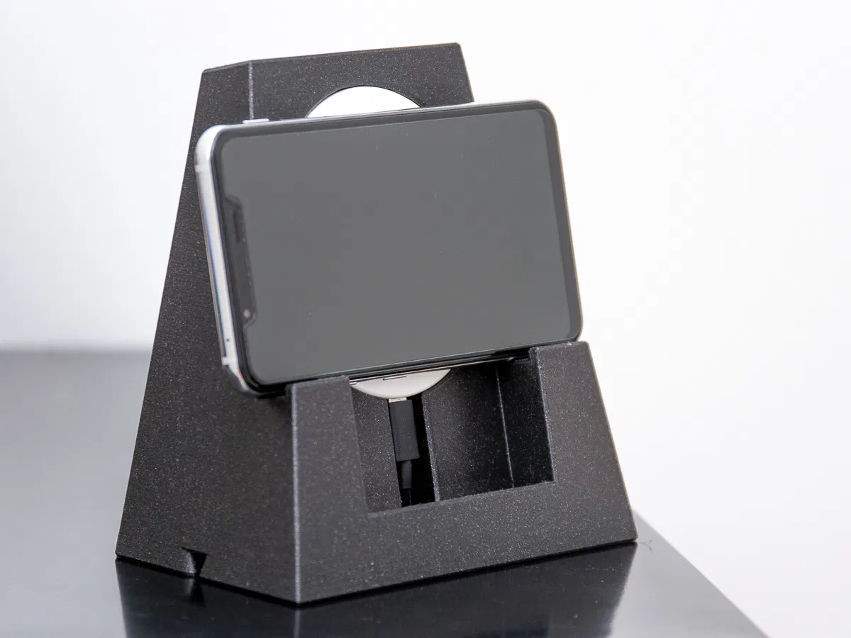 Một cái đế sạc smartphone dạng modular dành cho pad sạc không dây IKEA LIVBOJ. Điện thoại có thể để được cả dọc (portrait) lẫn ngang (landscape) mà pad sạc vẫn nằm ở giữa máy. Dây cáp đi trong một rãnh ở phần đế của giá đỡ, với 3 hướng thoát dây (phía sau hoặc hai bên).