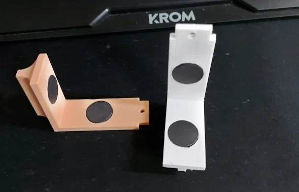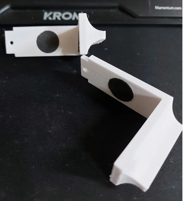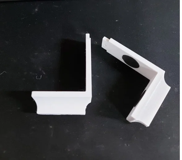 Đây là một cái giá đỡ hình chữ L, có 2 nam châm, dùng để lấy cao độ hoặc vị trí của một bức tường ngăn (tabique). Mẫu này được in bằng PETG.