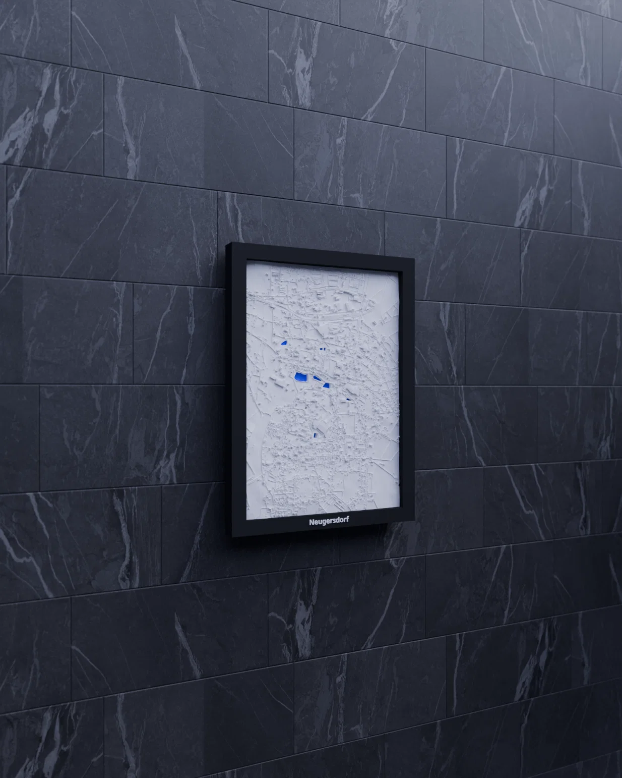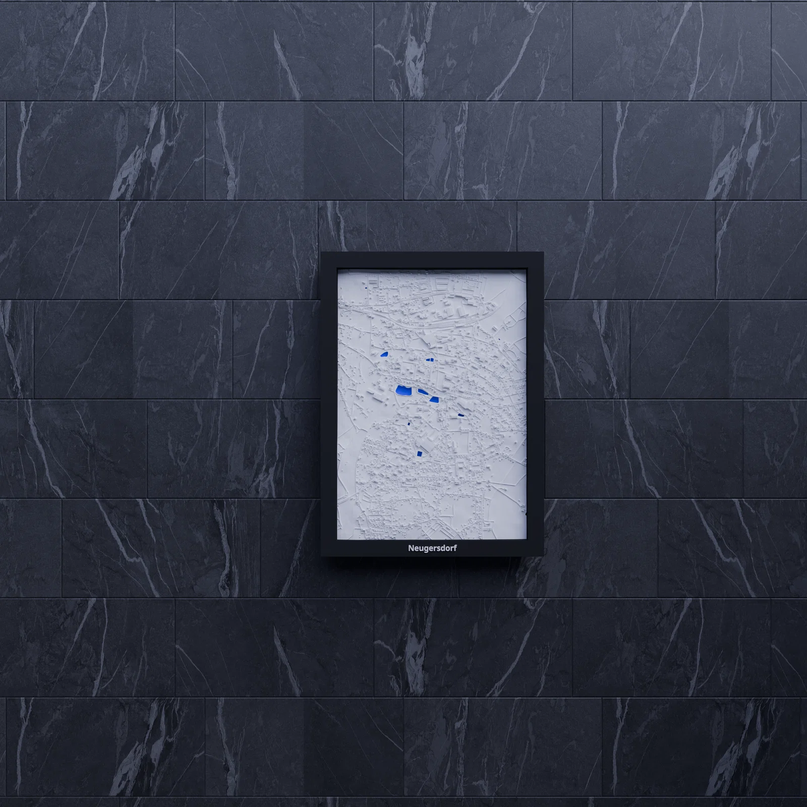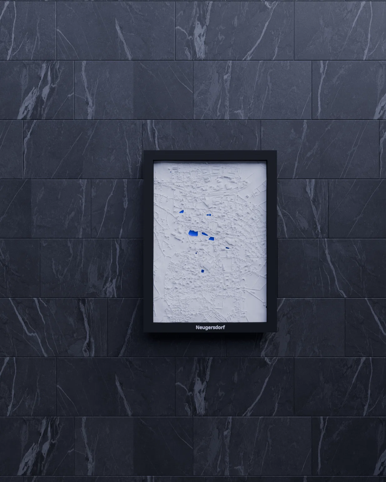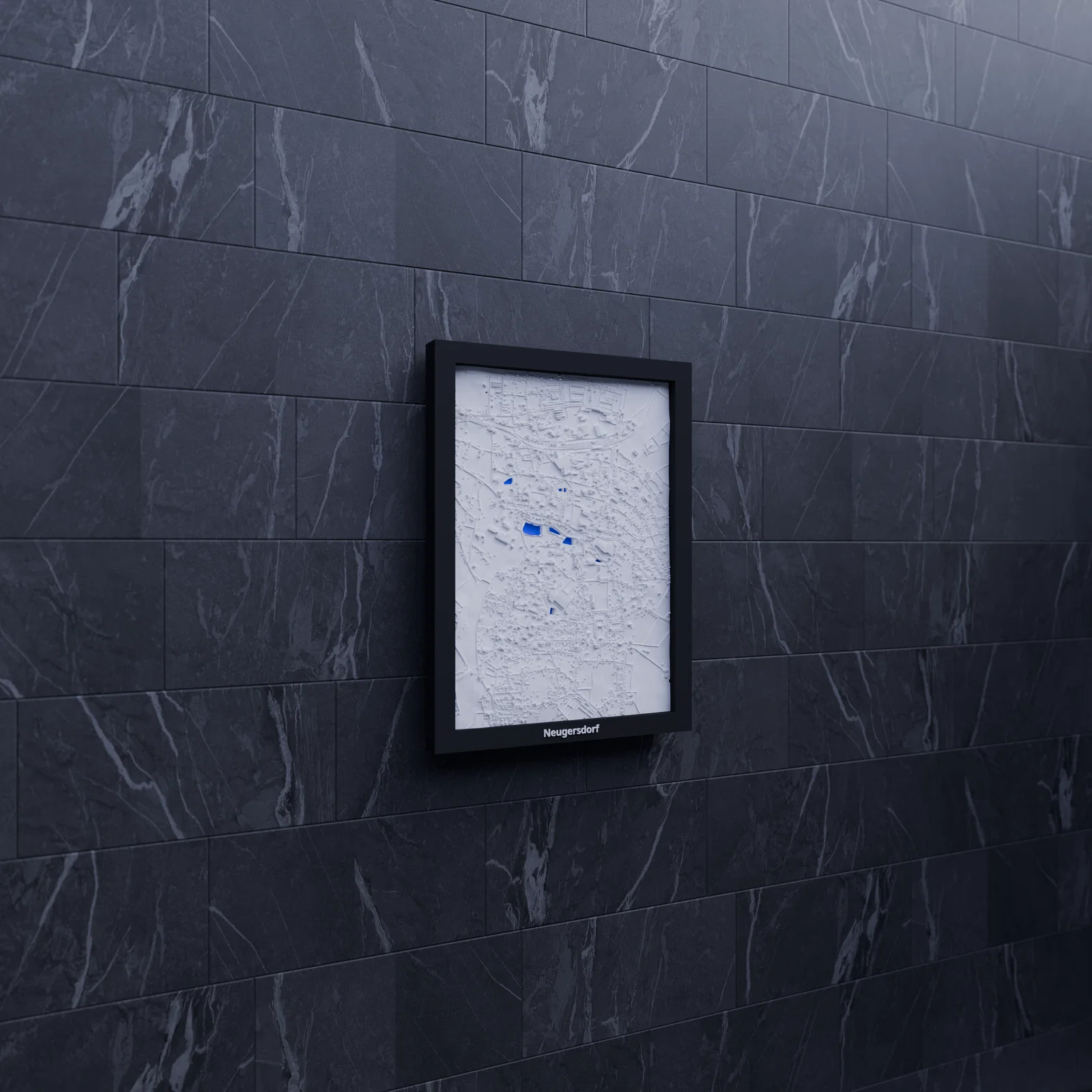 Bản thu nhỏ địa hình 3D tái hiện cảnh quan Neugersdorf (Đức) từ dữ liệu địa lý, thu nhỏ khu vực 1.844 × 2.624 km xuống 119.5 × 170.5 mm. Có STL/3MF, nhiều frame kèm lỗ treo, profile in tối ưu.