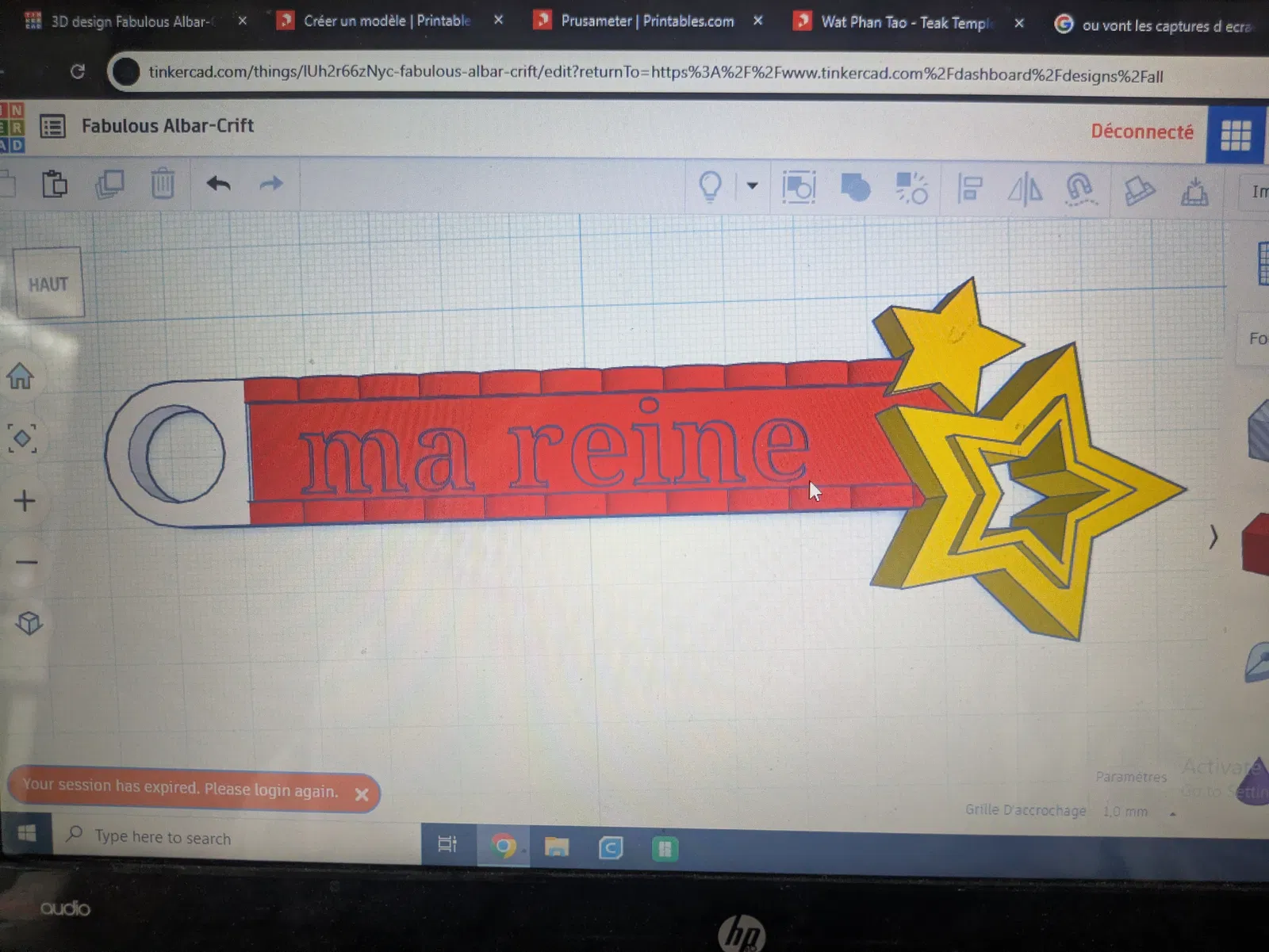 Mẫu móc khóa “ma reine” (porte clé ma reine), thiết kế đơn giản với thông điệp “dành cho ma reine”. Phù hợp để in 3D làm quà tặng nhỏ gọn, dễ mang theo hằng ngày.