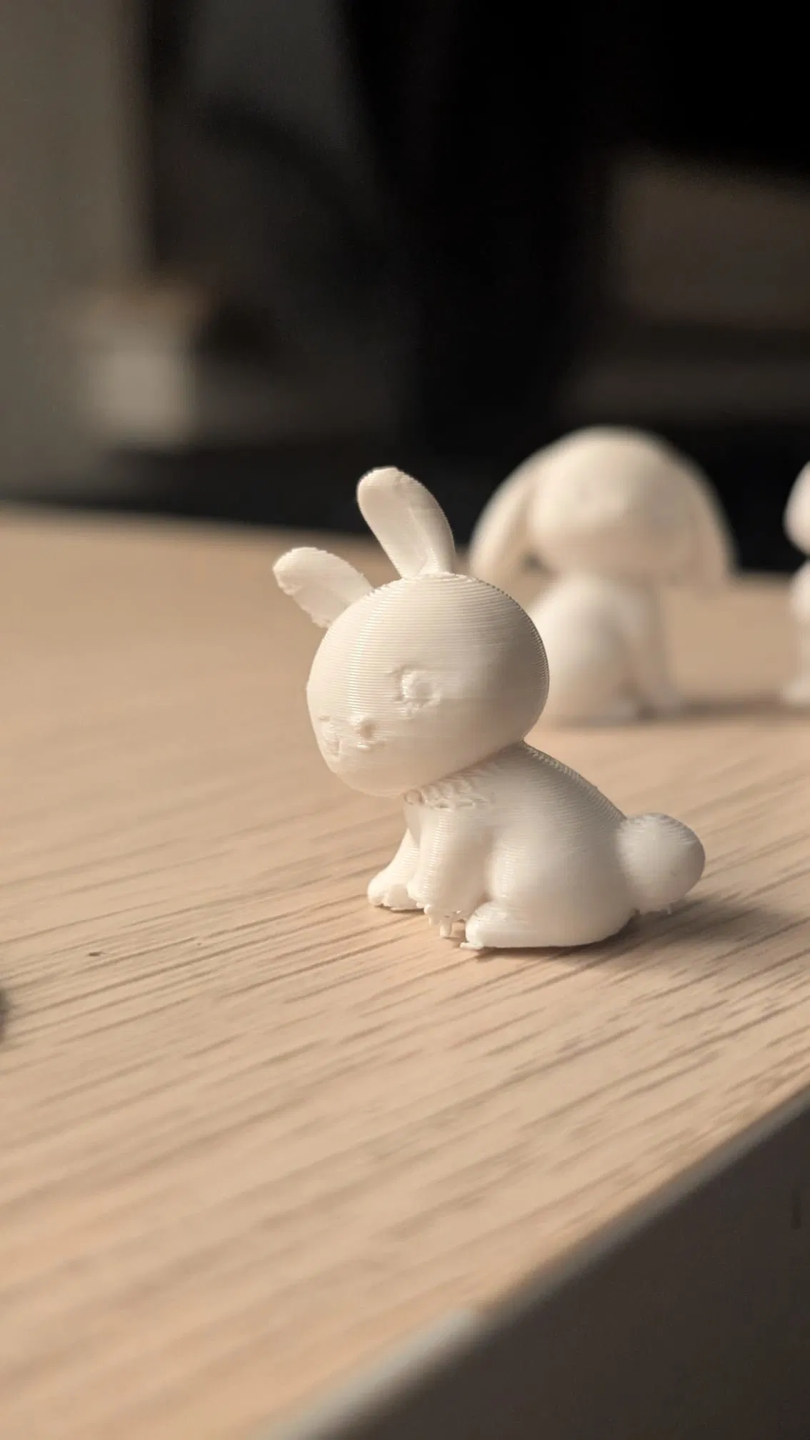 Bộ Mini Hasen Kollektion gồm 4 mẫu thỏ mini kiểu kawaii, mỗi mẫu một dáng riêng (ngồi, chú ý, tinh nghịch, thư giãn). Model tạo bằng Blender, hợp in PLA và nên bật Support để ra chi tiết đẹp.