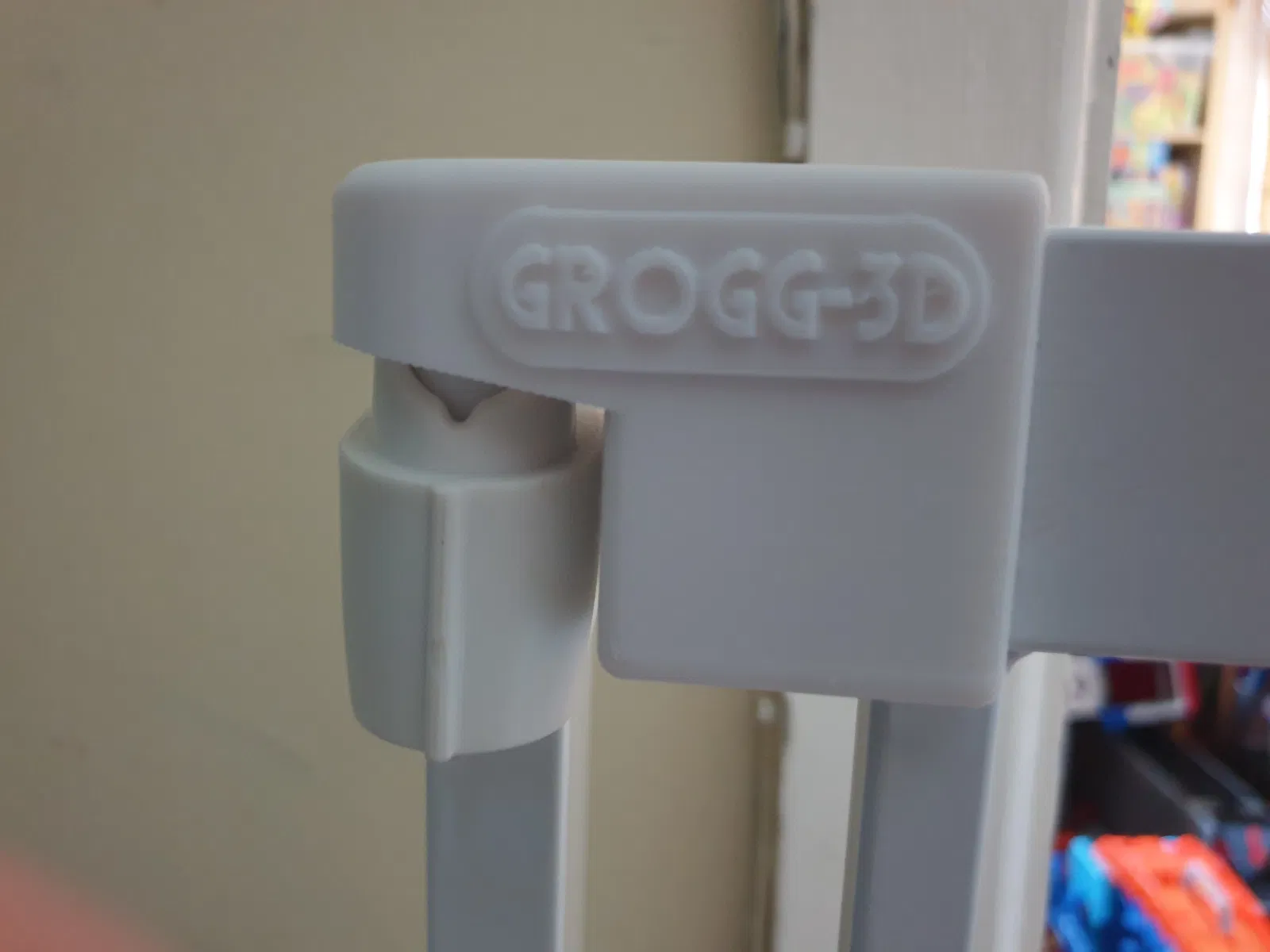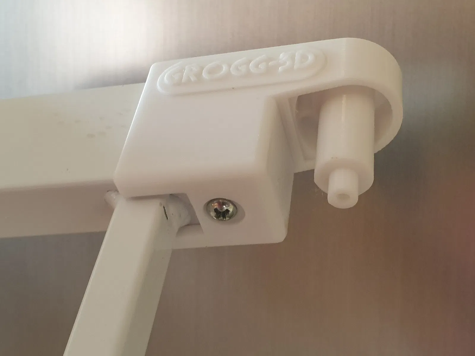 Chi tiết bản lề trên (bên phải) để thay thế cho Safety 1st Stair Gate – SecurTech Flat Step. Đây là phần gắn ở cánh cửa (không phải khung). Khuyến nghị in PETG trở lên, tốt nhất ASA/ABS.