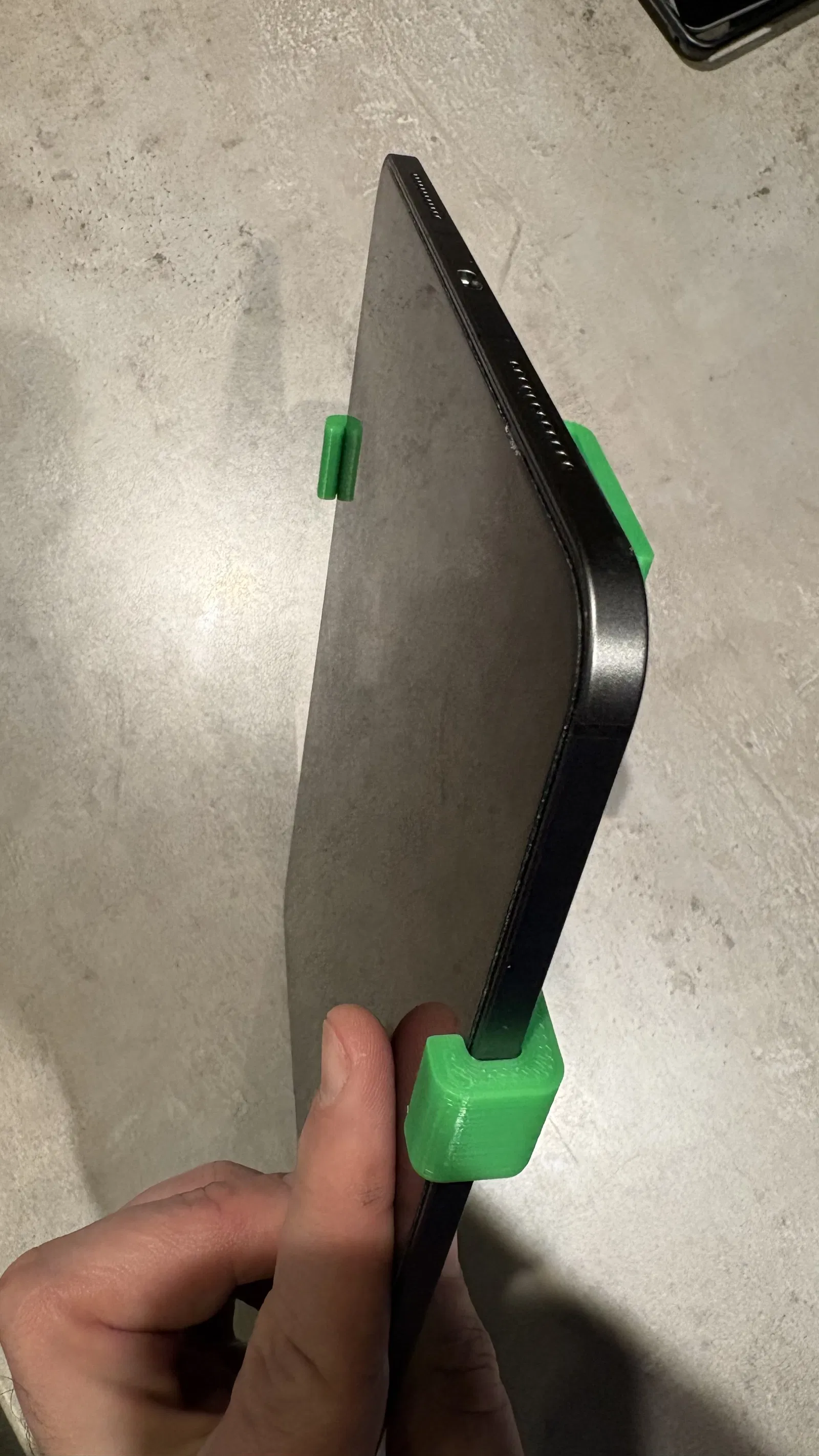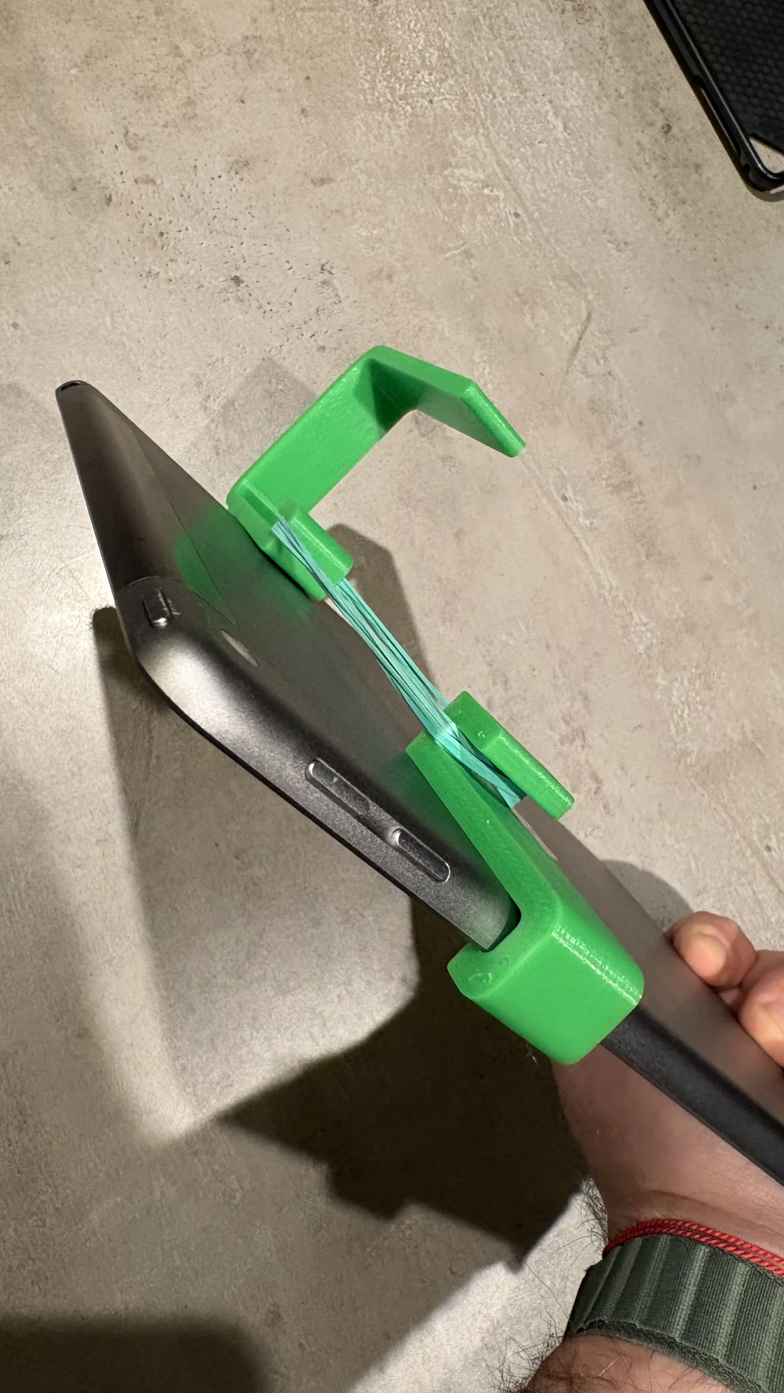 Giá đỡ iPad gắn trong xe, thiết kế để lắp ở bệ tỳ tay trung tâm. Khuyến nghị in PLA với 3 lớp perimeters và chuẩn bị 4 sợi thun để cố định/giữ chắc tablet khi sử dụng.
