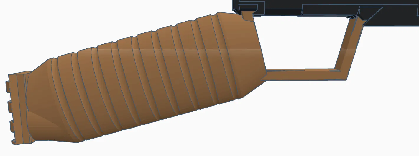 Bản remix tay cầm cho Skeleton Nikki theo góc cầm kiểu shotgun, giúp dùng như blaster phụ đeo sling. Có nhiều phiên bản: tay cầm thường với điểm gắn báng Picatinny/N-strike và bản N-strike lật ngược. Khuyên 30% infill, riêng trigger guard 100%.