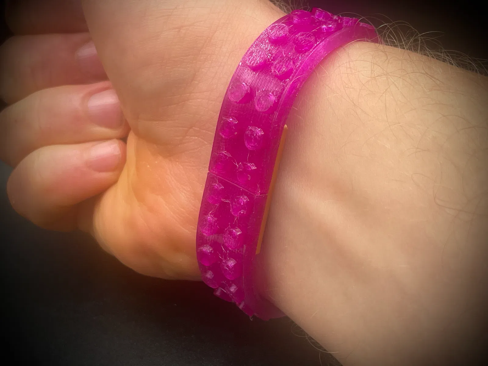 Vòng tay dạng brick Lego in bằng TPU 95A, dẻo và đeo như vòng tay. Có nhiều size từ 20–28 pins, kèm viên khóa (Lock) ẩn; phần Lock có thể in PLA, hoặc PETG/ABS để bền và giữ chắc hơn.
