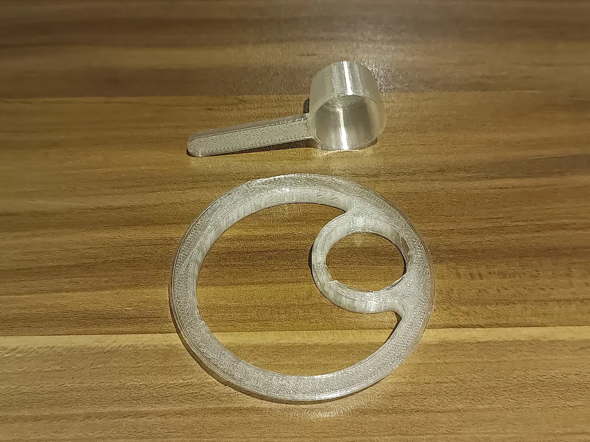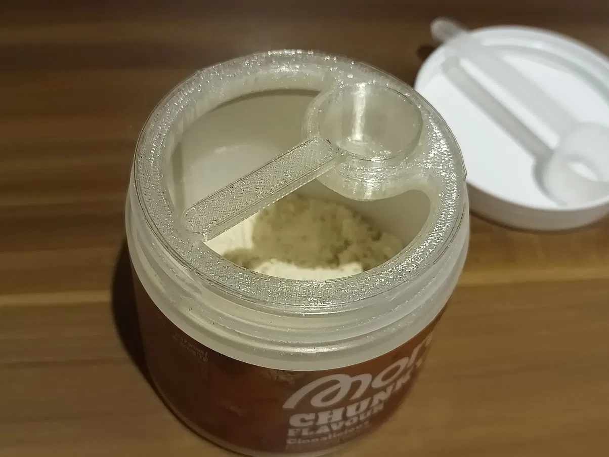 Bộ muỗng và khay gài (inset) dành cho hũ Chunky Flavour / MoreNutrition 90 g. Thiết kế mới vì đa số chỉ có khay cho hũ 150 g. Muỗng là bản remix từ Printables, cán được rút ngắn.