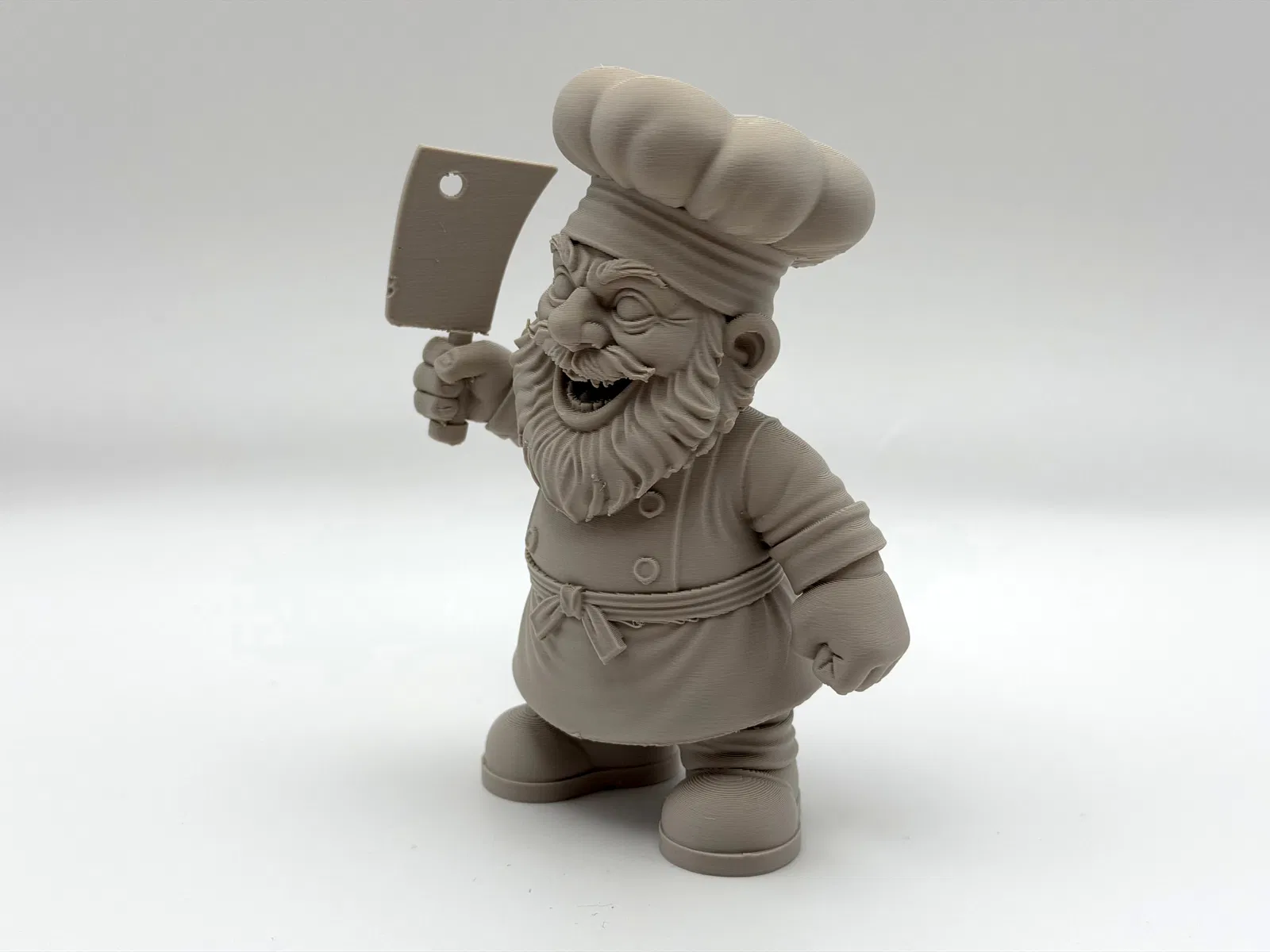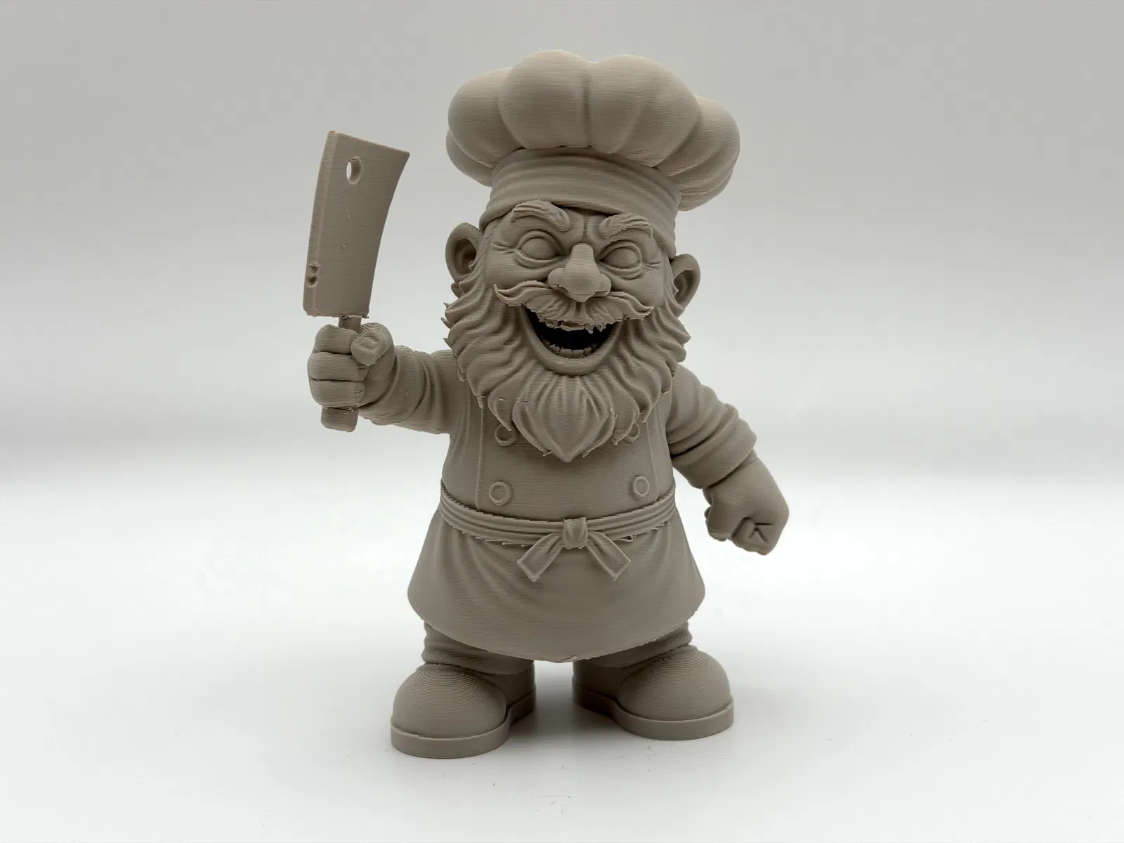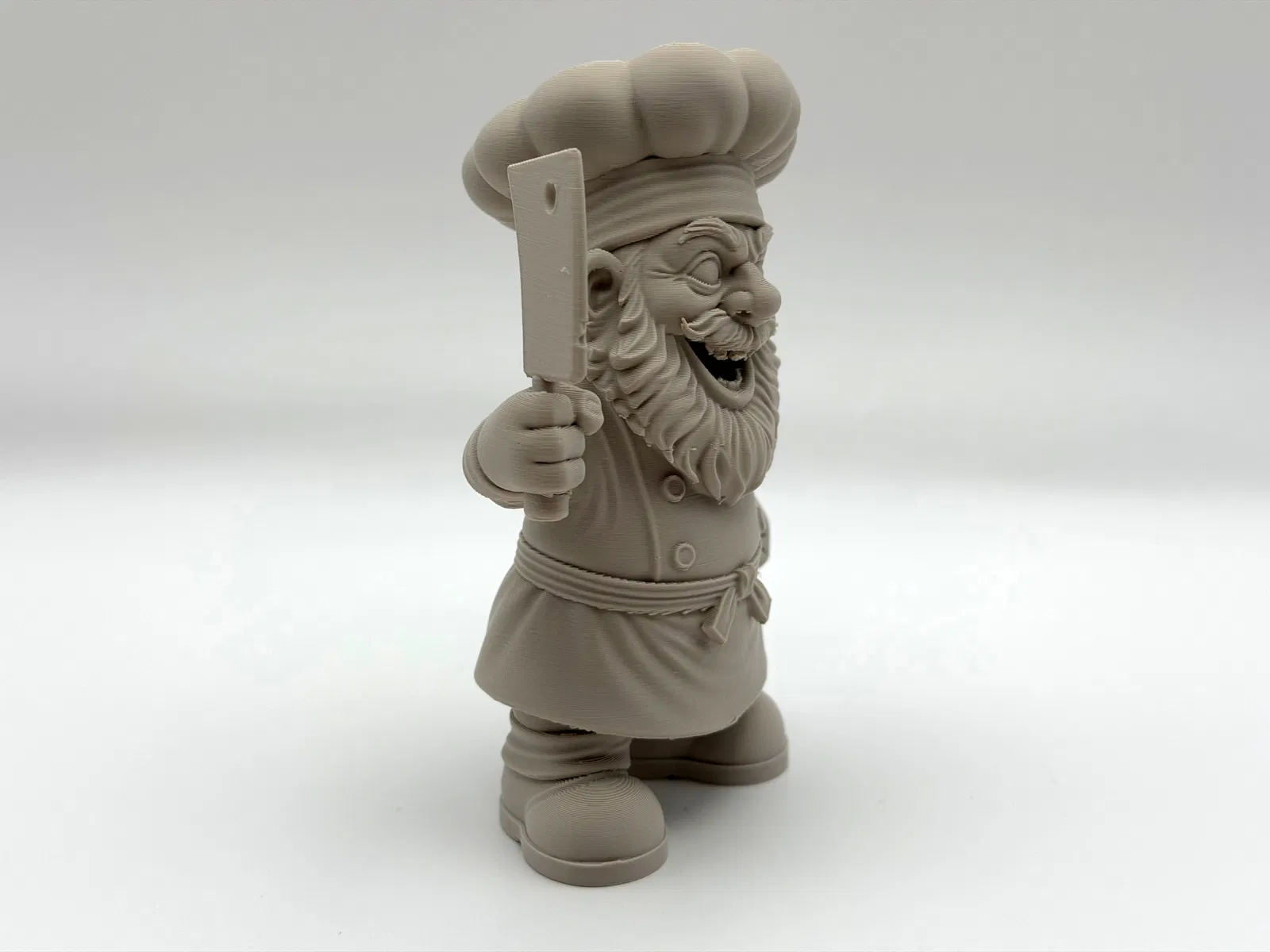 Butcher Gnome là tượng gnome trang trí với dao phay quá khổ, râu xồm và nụ cười “hơi điên”. Phù hợp trưng kệ bếp, workshop hay vườn. In 3D cần ít supports; supports organic bóc sạch, chỉnh Z-top height để tháo dễ hơn.