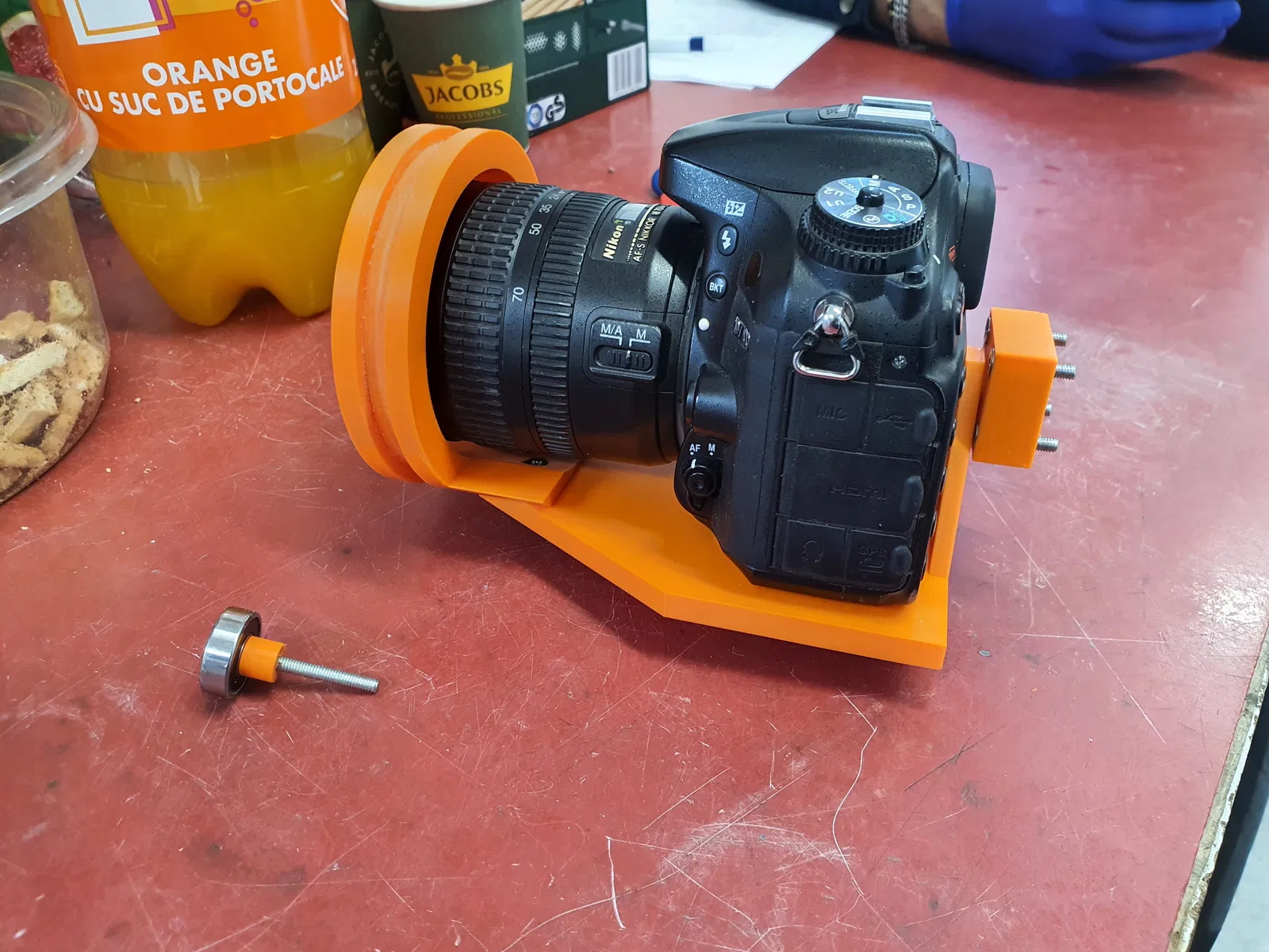 Thiết bị này dùng để xoay máy ảnh (Nikon D7100) qua lại giữa chế độ dọc và ngang khi đặt bên trong một hộp. Sử dụng vòng bi 608.