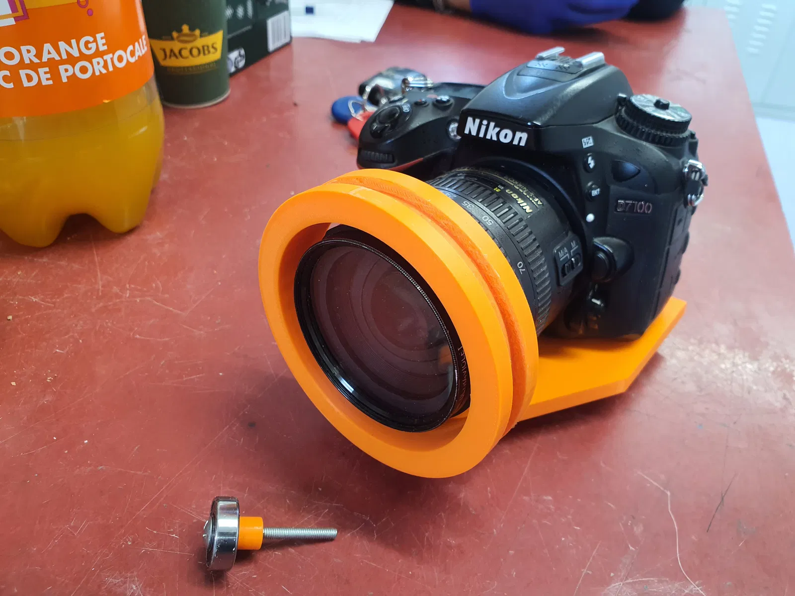 Giá đỡ giúp xoay máy ảnh Nikon D7100 giữa chế độ dọc và ngang khi đặt trong một hộp. Thiết kế sử dụng vòng bi 608 để xoay mượt và ổn định.