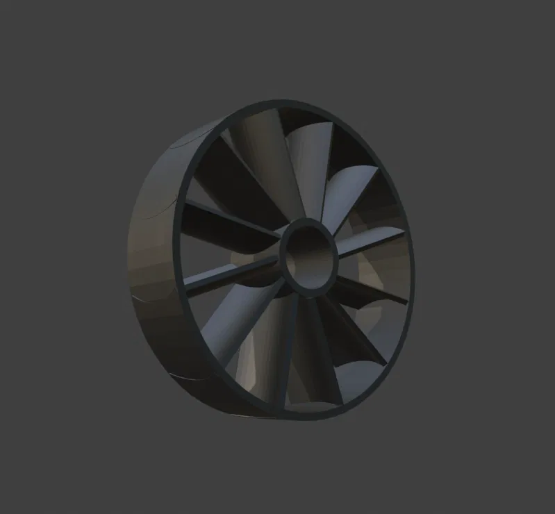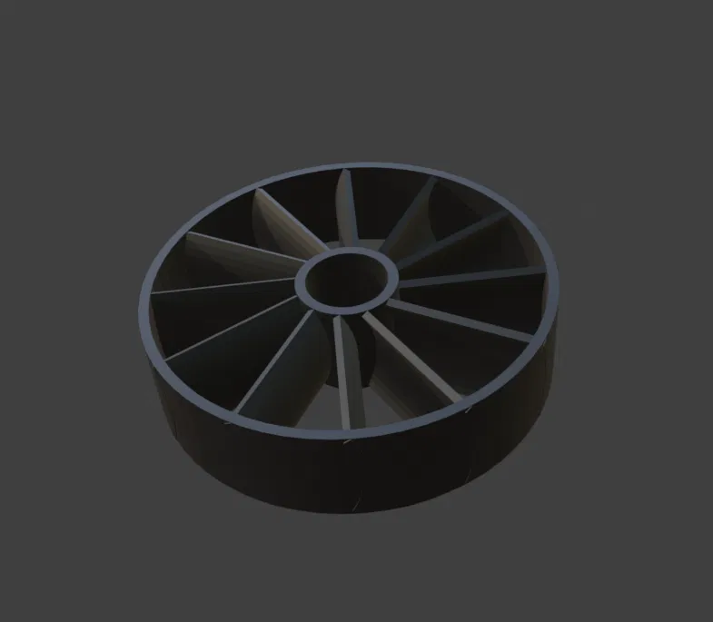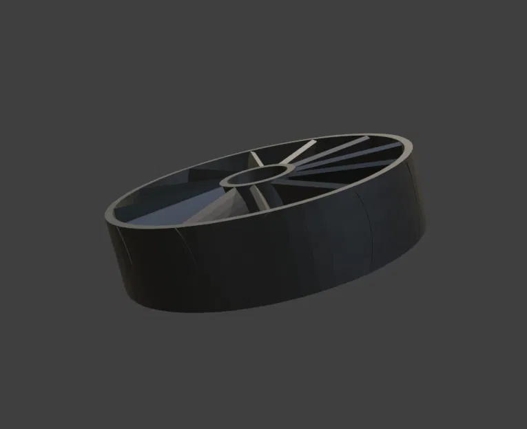 Bánh xe airless với nan cong linh hoạt, mô phỏng lốp truyền thống mà không cần bơm hơi. In TPU cho độ đàn hồi và bám đường cao, chống thủng, phù hợp robot/rover; thiết kế cho trục 20mm (có thể scale).