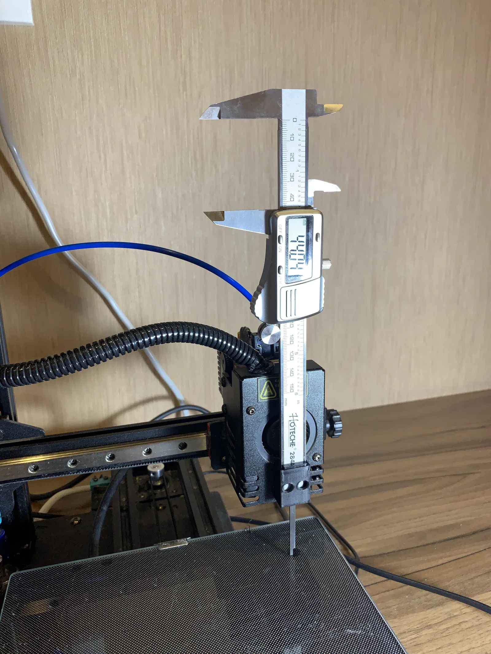 Giá đỡ thước kẹp để bed tramming cho Kp3s Pro v1, tương thích tốt với Hoteche 284315. Có thể tùy chỉnh nhanh bằng file SCAD và tác giả đã in với layer height 3.2.