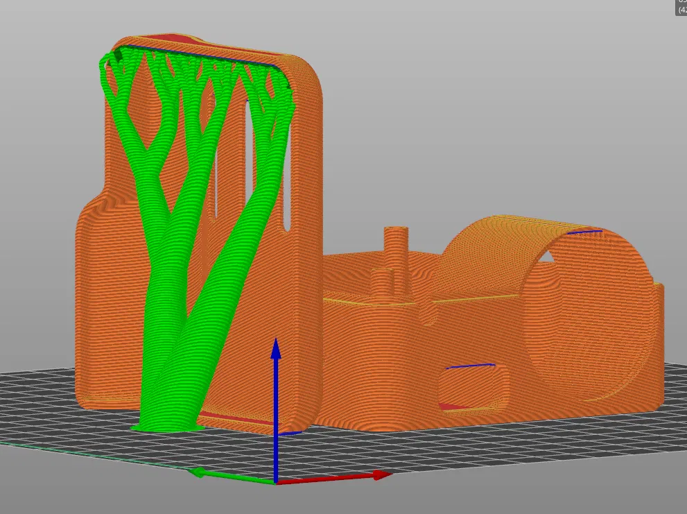 Tất cả đều được thiết kế để in nằm phẳng và không cần support, NGOẠI TRỪ cái body cap: mình in nó nằm nghiêng và dùng organic supports + brim. Mình có thêm hình để làm rõ là phần nào cần support và cần ở chỗ nào. Tất nhiên bạn cứ thoải mái chỉnh trong slicer theo ý, và sửa model theo đúng kiểu bạn thích.