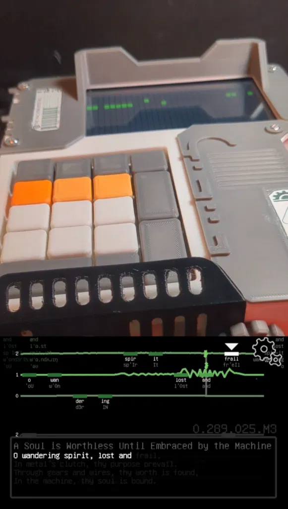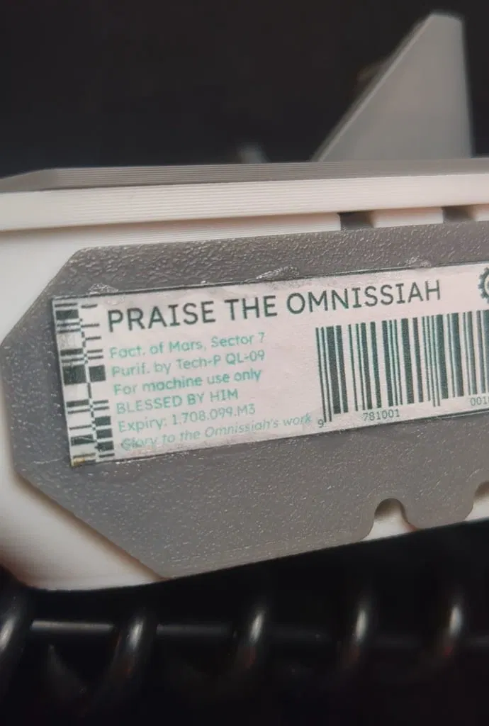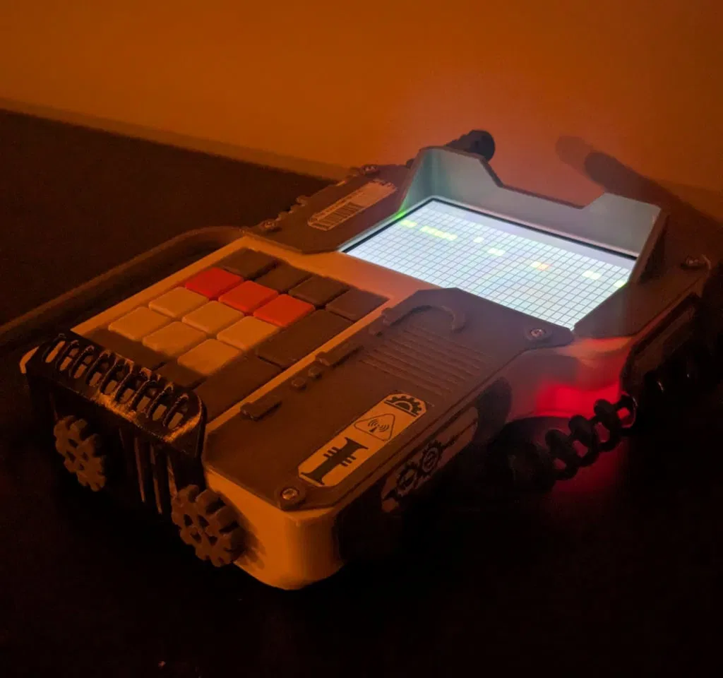 Thiết bị máy tính cầm tay kiểu “cyberdeck” làm theo Thánh Ý—một shrine cho Machine God để chúc tụng mỗi ngày. Dùng Raspberry Pi, numpad và màn hình 5 inch, kèm file in 3D và decals 52x16mm.