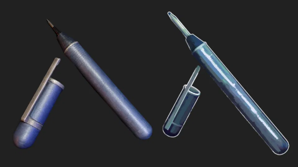 Mô phỏng theo cây Blue Oblong Pen trong game Disco Elysium. “Mượn dài hạn” từ Kim Kitsuragi.