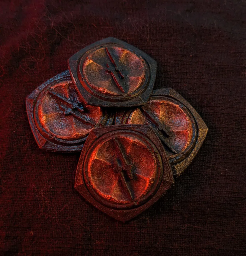 Đồng xu Blood Bond 2 mặt (heads/tails) trong Hunt Showdown, được chỉnh để lật “flippable” nhằm chọn loadout. In PLA 0.1mm, dán keo CA vài chấm; in dễ và sơn lên đẹp.