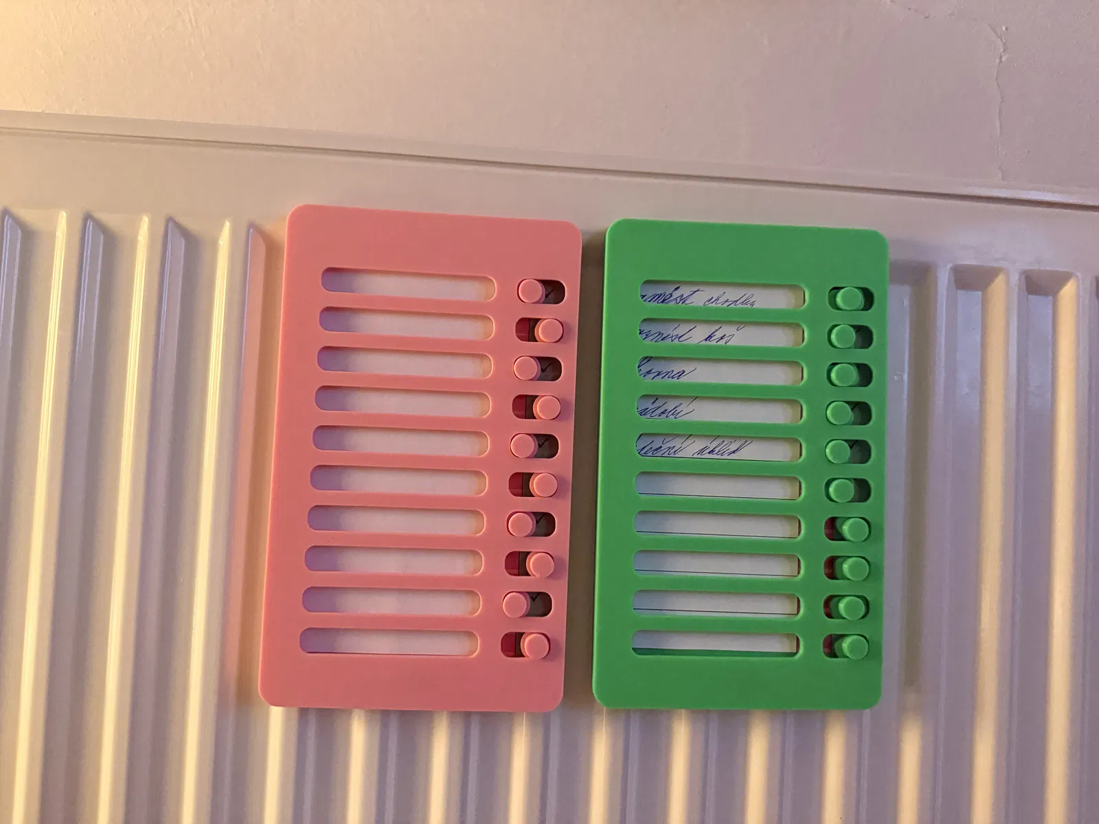 Mẫu Task List giúp bé và phụ huynh dễ theo dõi việc cần làm, bài tập về nhà và ghi nhớ hằng ngày. In PLA, layer 0.2, infill 15% Grid. Dùng 8 nam châm 8x2mm để nối và gắn tủ lạnh.