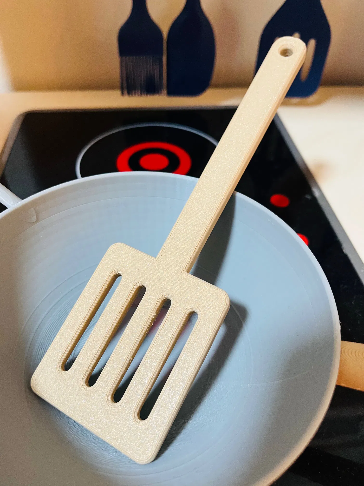 Toy Spatula (xẻng lật đồ chơi) cho bé thỏa sức nấu “món ngon” trong bếp đồ chơi, chơi giả vờ vui nhộn và kích thích trí tưởng tượng. Mẫu này in 3D được mà không cần support.