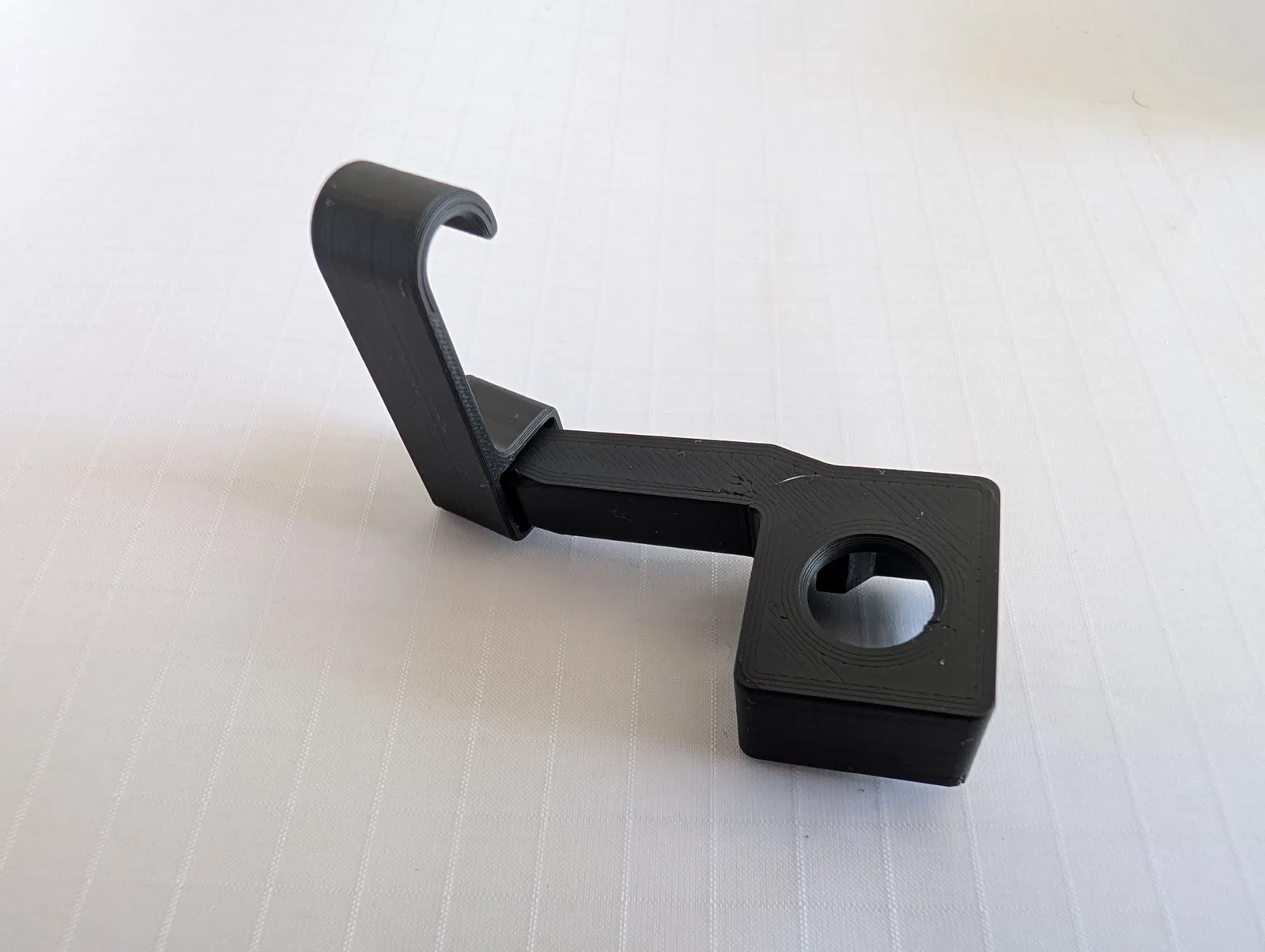 Móc nhỏ cho Xarilk Gen 3 giúp “đậu” cây rod khi không mài. In 2 chi tiết rồi ấn hook vào stub của nắp trên theo đúng chiều trong hình, sau đó gắn nắp lên cột đồ mài. In PLA, nozzle 0.4 mm (xem 3mf).
