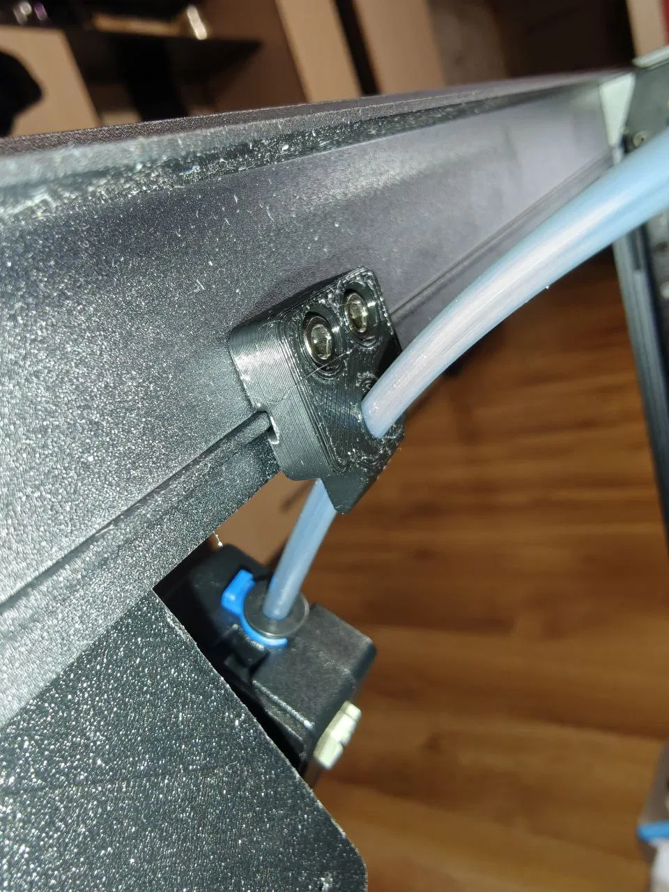Giá đỡ PTFE tube tuỳ chỉnh cho Sovol SV08 khi dùng spool holder phía dưới. Thiết kế lại góc vào để giảm ma sát gần guide zin và giúp đường filament mượt hơn. Kích thước 1:1, có thể scale X/Y 105% nếu khó lắp.