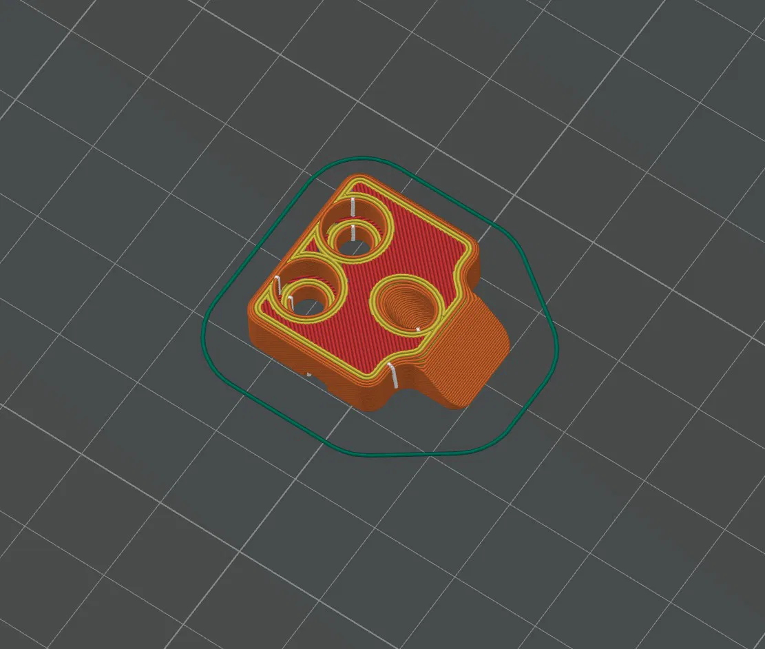 Sau khi chuyển sang gắn cuộn filament ở phía dưới, mình gặp hiện tượng bị kéo nặng/ma sát gần chỗ dẫn PTFE tube zin, tuỳ theo vị trí của toolhead. Mình đã thiết kế lại góc đi vào để giảm lực cản và đảm bảo đường filament đi mượt hơn.