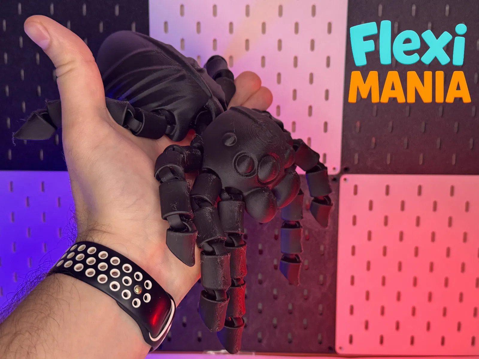 Nhện Flexi XXL siêu to, print-in-place một mảnh, khớp dẻo mượt và không cần supports. Hợp trang trí Halloween, đồ chơi để bàn hoặc bán ở market. Muốn bán bản in cần Patreon commercial license.