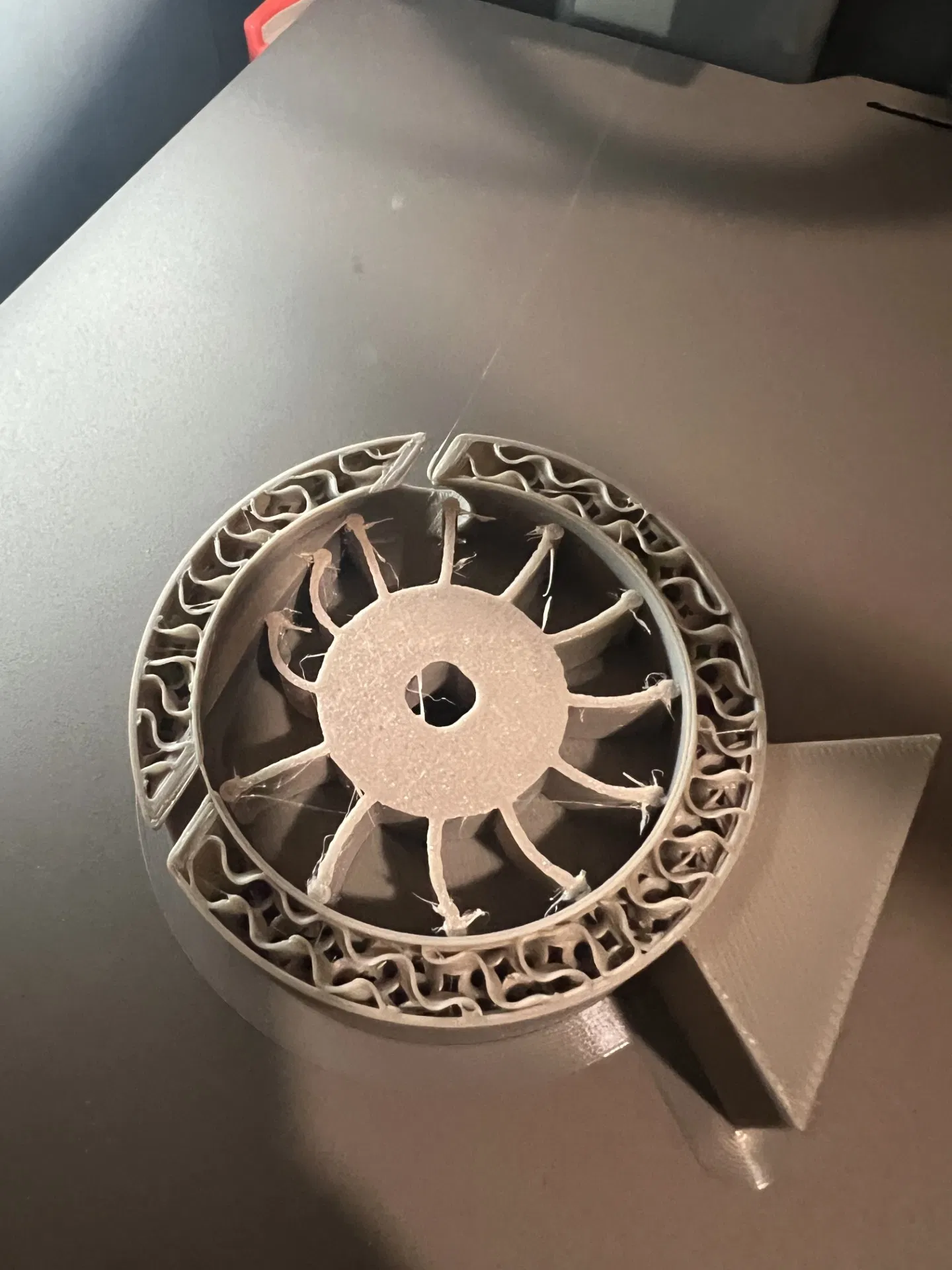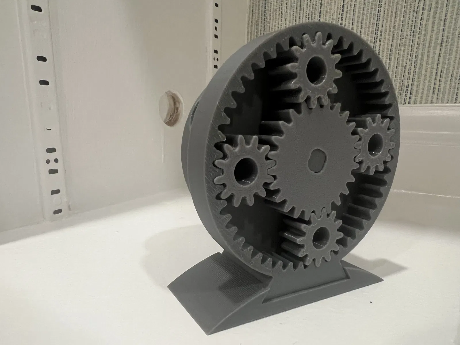 Bơm cánh quạt mềm (Flexible Impeller Pump) chạy bằng tay quay và hộp số hành tinh (planetary gearbox). Phần bánh răng, cánh quạt (impeller) và nắp che bạc đạn (bearing cover) nên in bằng TPU. Tất cả phần còn lại in PLA. Bản in này sẽ kín cánh quạt bên trong vỏ bơm. Cách làm là tạm dừng máy in, đặt impeller vào trong trước, rồi tiếp tục in.