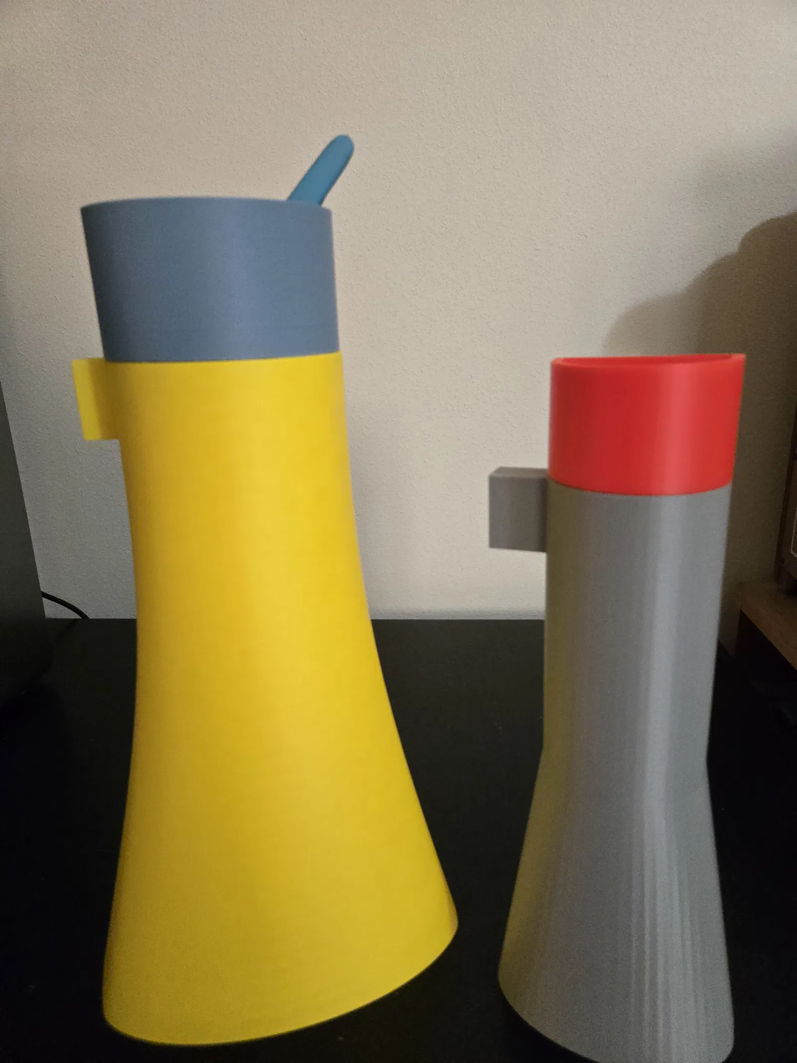 Mình cần cái gì đó làm nhanh vì mấy bé mèo nhà mình cứ tưởng máy mới của mình đang nhả kẹo, cứ lôi ra khỏi thùng rồi tha đi vòng vòng trong nhà. Nên mình thiết kế cái này theo kiểu in 1 món đơn giản, chỉ cần trượt thẳng vào đúng vị trí ở ngàm/đầu nối của spool holder có sẵn. Chỉ việc tháo spool holder ra, trượt cái này vào là xài. Mình cũng thêm một cái cốc/khay đựng dụng cụ đặt vừa khít lên phía trên, đáy có lỗ để thông gió.
