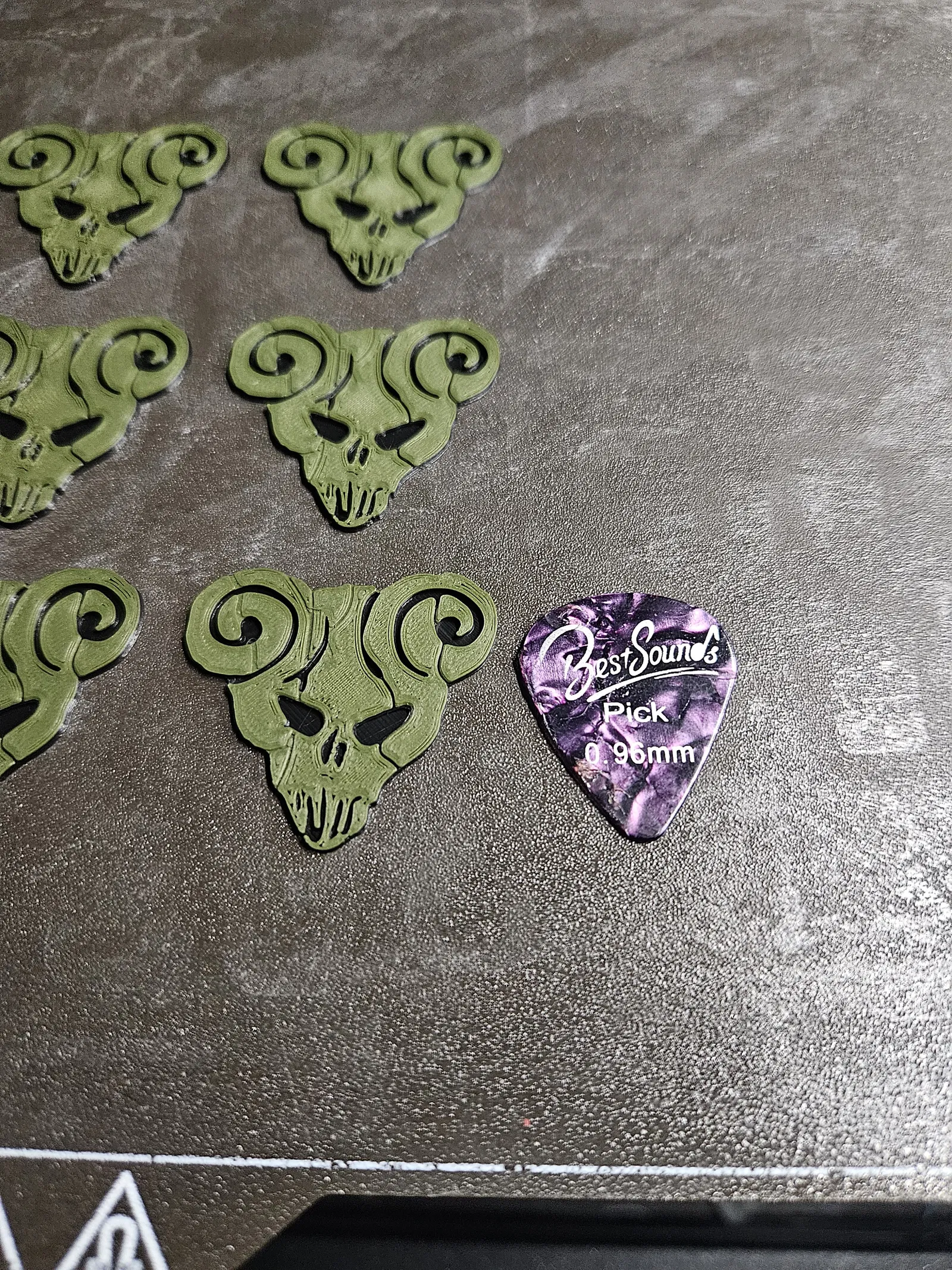 Mẫu pick đàn guitar lấy cảm hứng từ “Pick of Destiny”, độ dày 1.4 mm. Có thể scale theo trục Z để hợp tay cầm và thiết lập đổi màu cho 2 lớp trên cùng khi in để tạo điểm nhấn.