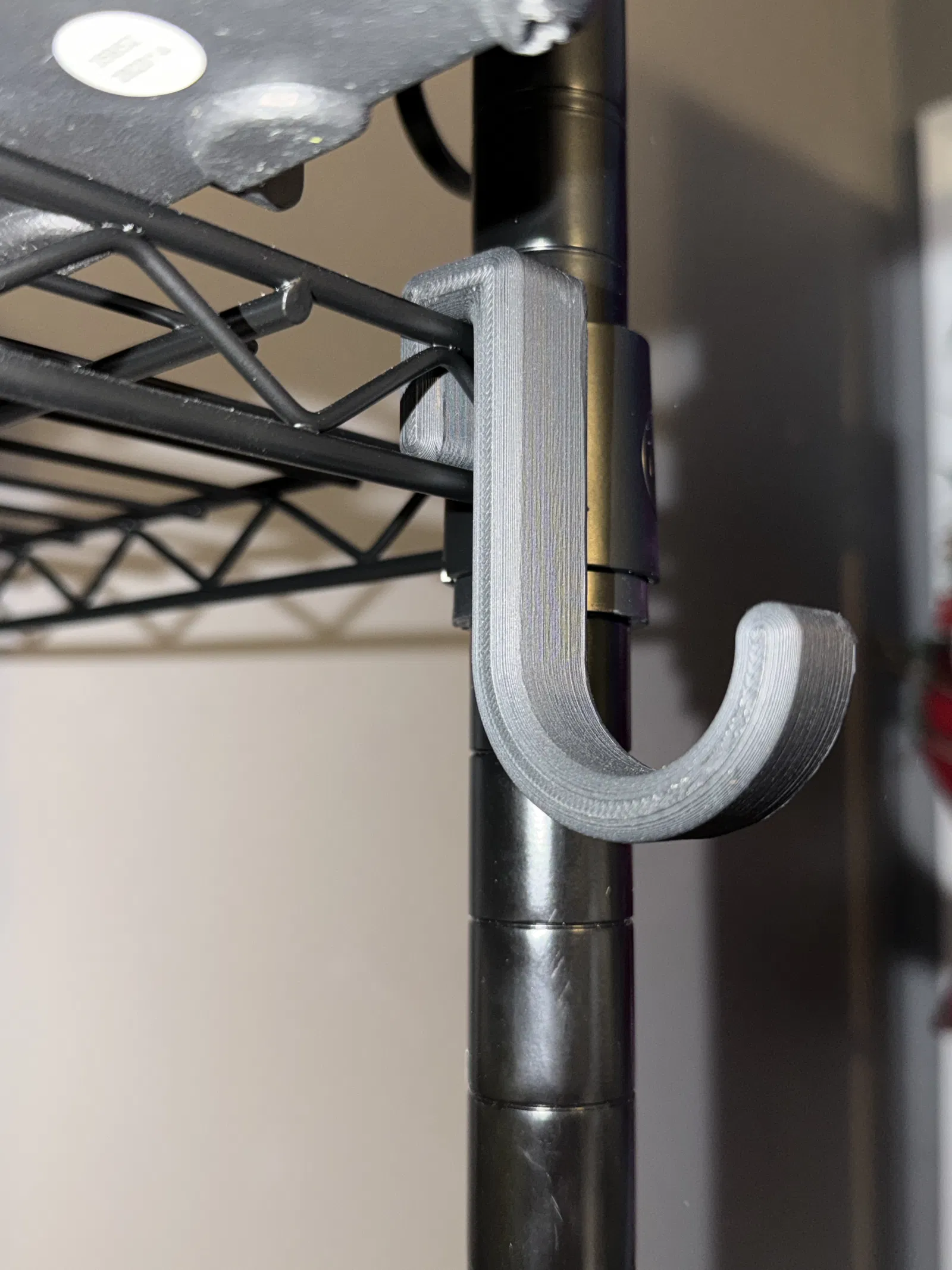 Mẫu móc treo áo (Coat Hook) thiết kế để gắn lên kệ dây (wire shelf), giúp treo áo hoặc đồ dùng gọn gàng, tiện lợi. Phù hợp in 3D để dùng trong nhà, phòng giặt hoặc kho.