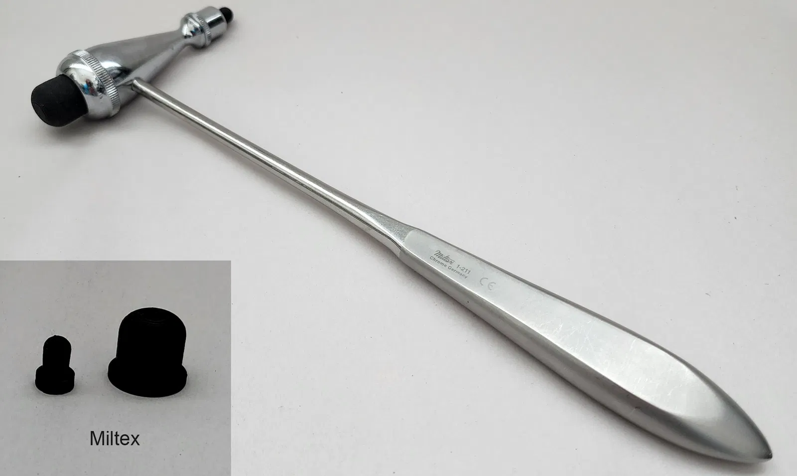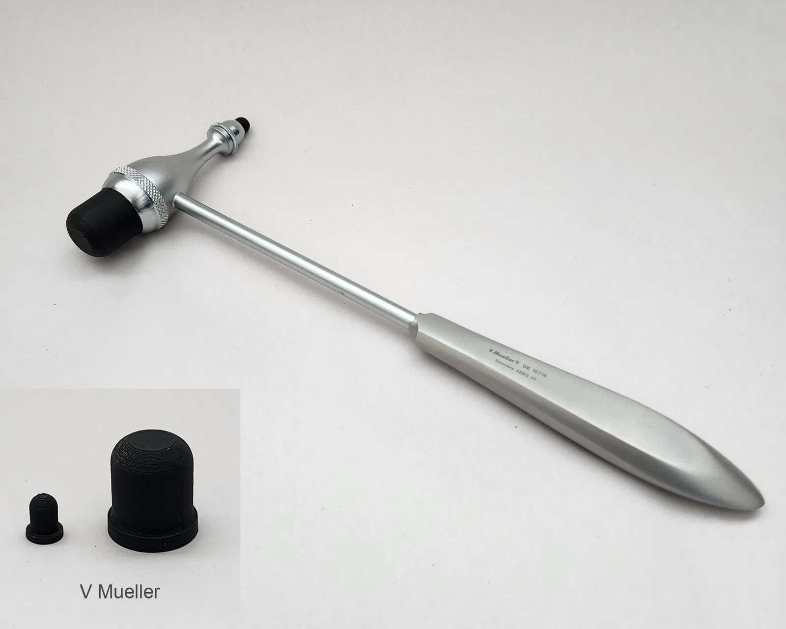 Bộ bumper thay thế cho một vài loại búa phản xạ Tromner. Tới giờ mình đã làm bumper thay cho dòng MDF Tromner rất phổ biến (vừa cả bản nhựa lẫn bản thép), cây V Mueller nổi tiếng, Miltex 1-211 (mình thích nhất), và một cây KaWe (làm giúp bạn; mình không chắc chính xác nó sẽ vừa model nào). Các bumper này có bề mặt gõ phẳng (thay vì bo tròn/dạng vòm). Tin mình đi, đúng ra nó nên như vậy. V Mueller vốn đi kèm bumper phẳng; còn mấy loại kia thường đi kèm bumper bo tròn.