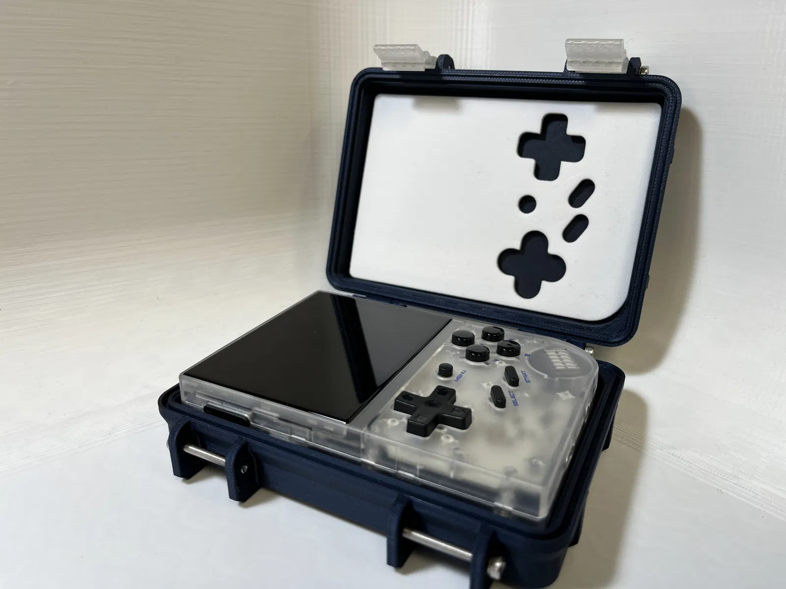 Mình rất thích mẫu rugged box nên quyết định chỉnh sửa lại để dùng cho RG35xx của mình. Mình chừa khoảng 2mm trống xung quanh thiết bị để có thể thêm lớp foam padding. Phần foam ở mặt trước mình dùng luôn miếng foam đi kèm khi máy được ship. Ốc là loại M3 dài 25mm và bạn sẽ cần 6 con. Có tùy chọn thêm gioăng TPU, lưu ý là cái này không làm hộp kín nước hoàn toàn.