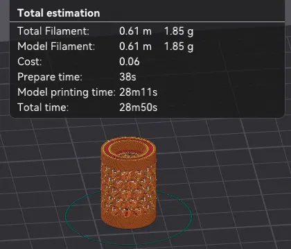 Cho mình biết bạn in ra sao nha, mình cũng rất muốn thấy bản make của bạn. P/S: muốn size khác không? (Cái này là 22mm x 16OD x 6ID, pattern là 3mm hex. Mình ghi đủ info ở đây luôn.)