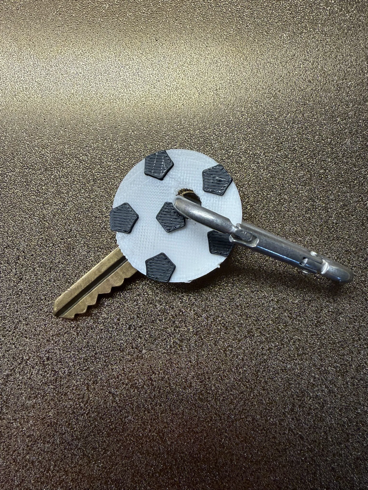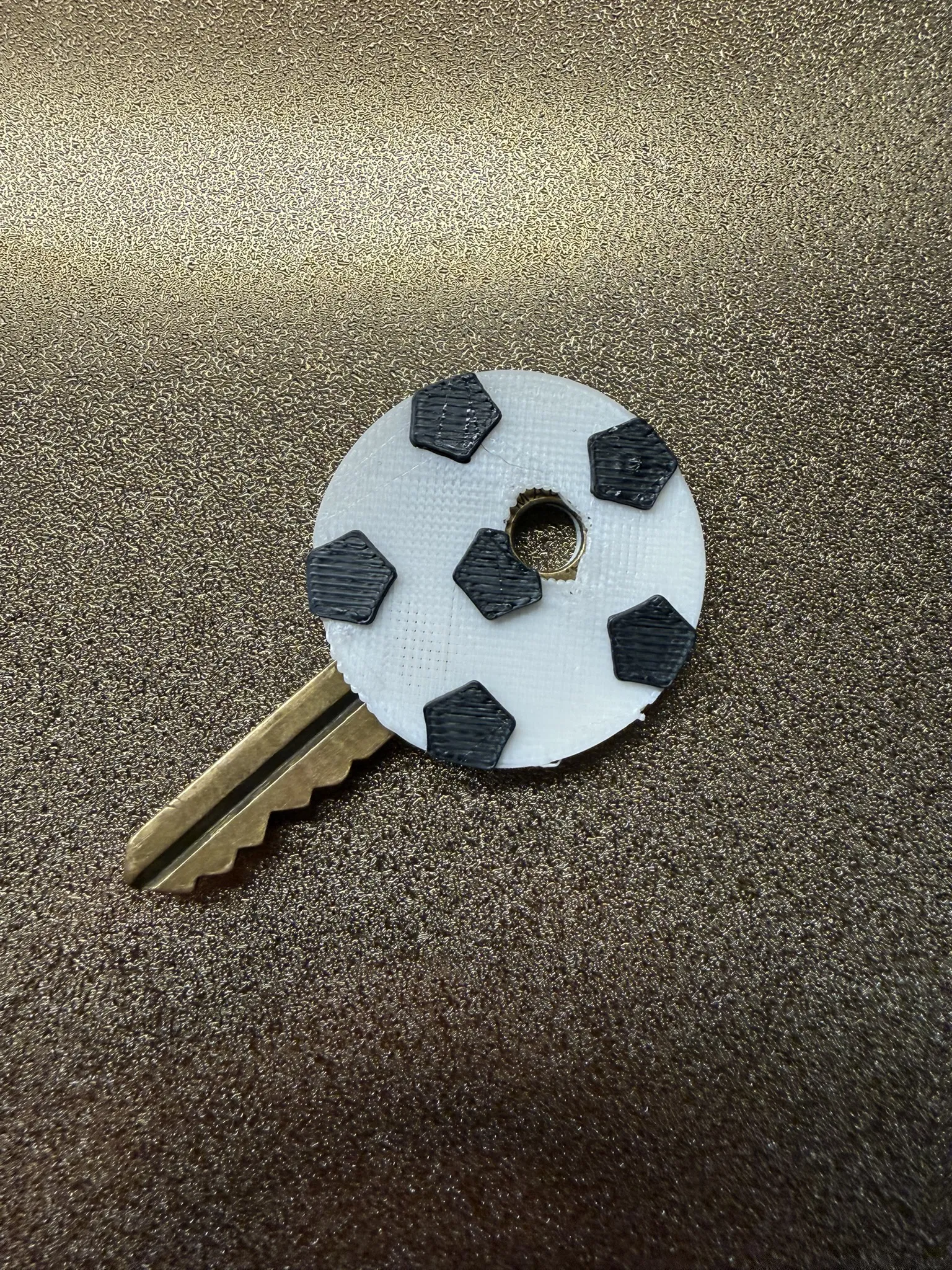Mẫu Soccer Ball Key Cover ôm sát, in PLA nhanh khoảng 10 phút. Hỗ trợ in 1 hoặc 2 màu, hợp cho fan bóng đá muốn bộ chìa khóa nhìn vui và nổi bật hơn. Khuyên dùng supports phần chạm build plate và thêm brim.