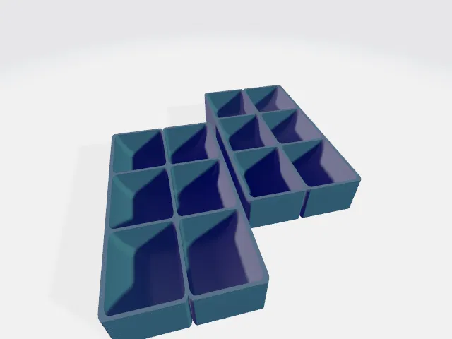 Remix khay token của FlameCraft: tách khay token gốc thành 2 khay để đặt mỗi bên tấm mat. Hai khay cùng chiều dài và chiều rộng để vẫn vừa hộp. Gợi ý in: layer height 0.28 mm, 2 walls, 10% infill.