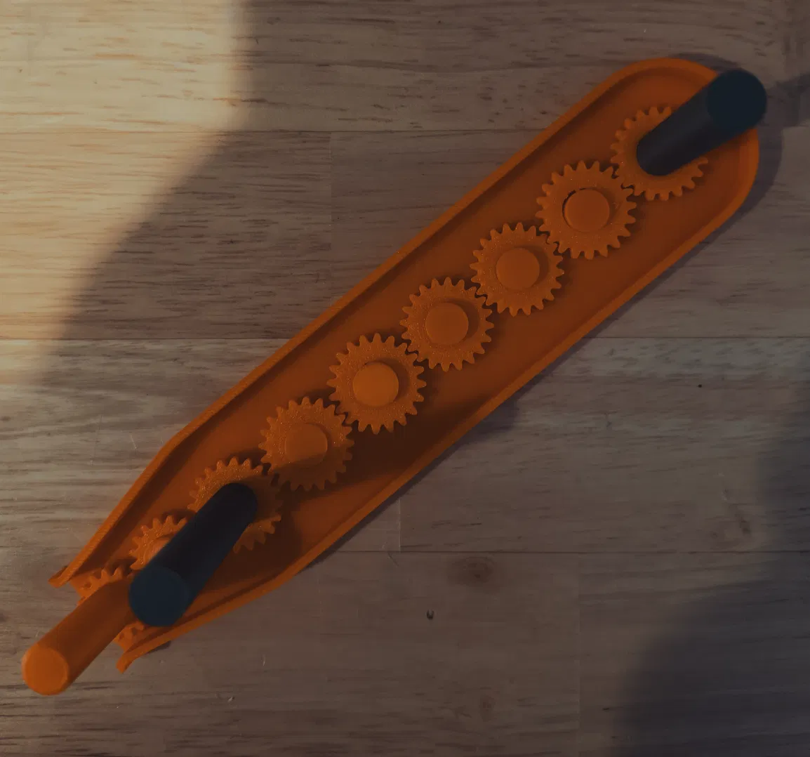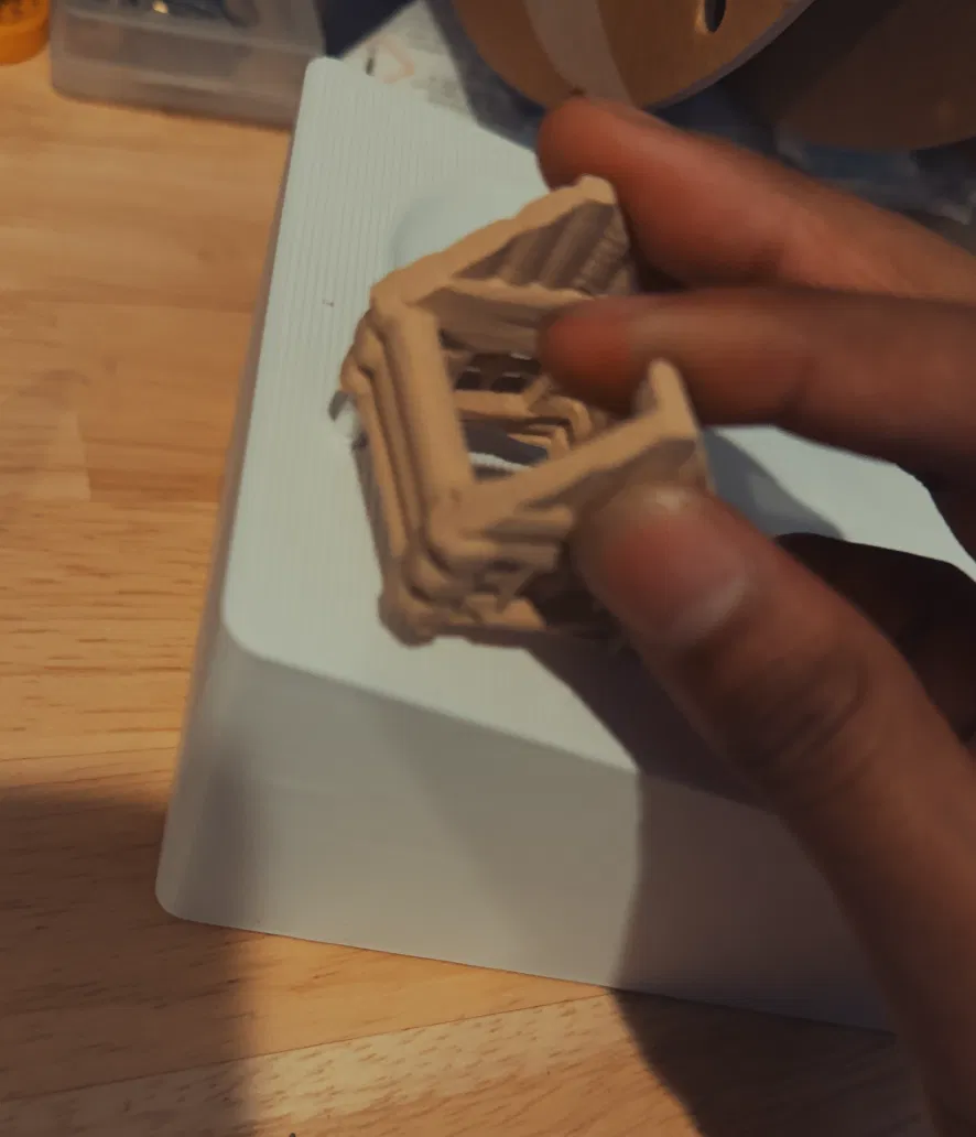 Nếu bánh răng bị kẹt và không quay, hãy ấn gearbox xuống nhẹ một chút vì có thể bánh răng đang cạ vào đáy dốc trượt tuyết gây ma sát. Nếu vẫn kẹt, lấy gearbox ra và chỉnh một vài bánh răng nhỏ hơn hoặc lớn hơn trong slicer để khớp vừa. Một lần nữa, đừng lo chuyện bánh răng cuối không quay—mình cũng bị vậy, nhưng khi gắn dây TPU vào là nó chạy ổn.