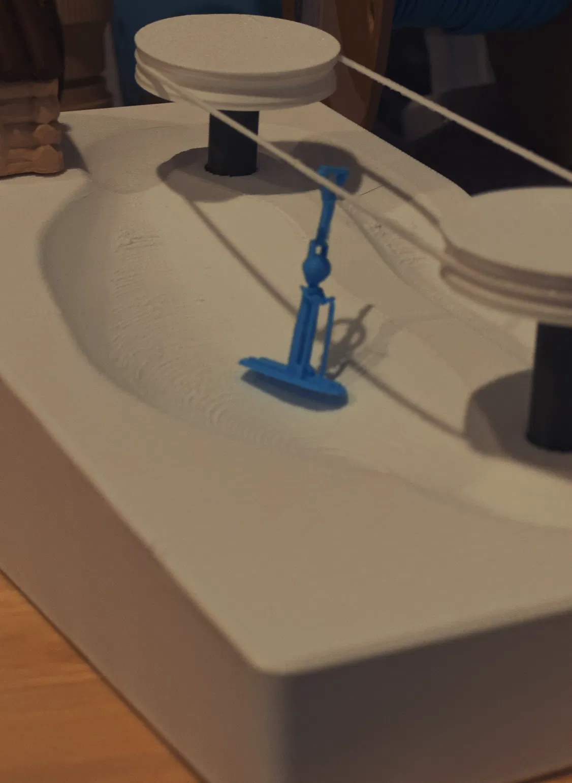 Nhớ kiểm tra các pulley màu trắng gắn lên các chốt màu xanh phải thật khít. Nếu bị quá to hoặc quá nhỏ, bạn scale lại trong slicer cho phù hợp.
