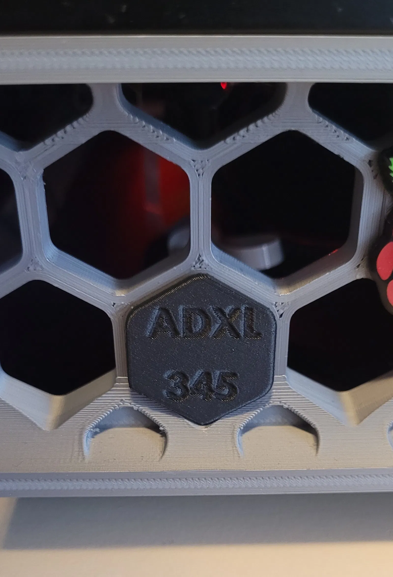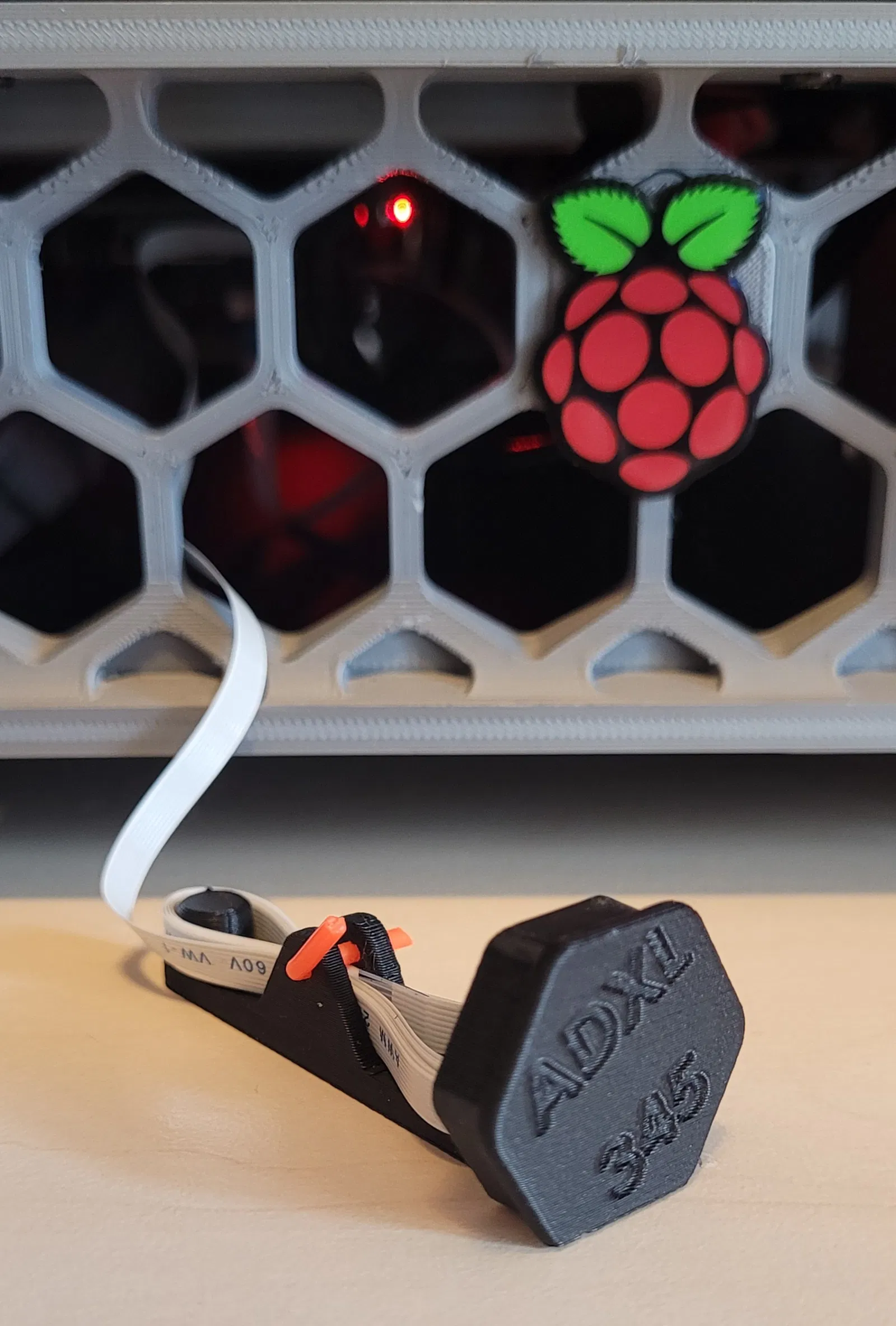 Insert hình lục giác gắn vào phần skirt của Voron để cất gọn ribbon cable từ bộ LDO Input Shaper (ADXL345). Không cần mở electronics bay hay rút dây khỏi Raspberry Pi; dùng một đoạn filament hơ nhẹ để giữ dây.